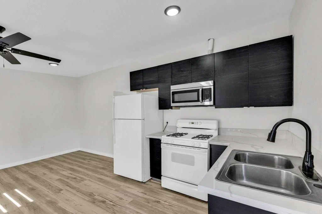 Beautifully renovated 2-bedroom, 1-bath unit in the heart of National City, freshly painted and ready for immediate move-in. This charming home features a modern open-concept kitchen, a renovated bathroom, a mini-split system for cooling, and a private patio. The primary bedroom includes a walk-in closet, and both bedrooms are on lower level, creating a unique split-level layout. Bring your own Washer & Dryer (hookups available in back patio). Please note that access to the unit requires steps and is not wheelchair accessible. Tenant is responsible for all utilities except trash. Street Parking; the driveway is reserved exclusively for the front/main house. The entry area and front patio are shared common areas with the other units on the property. No pets allowed. Conveniently located near freeways 5 and 54, shopping centers, schools, and much more. A great opportunity to live in a fully refreshed unit in a central, accessible neighborhood.