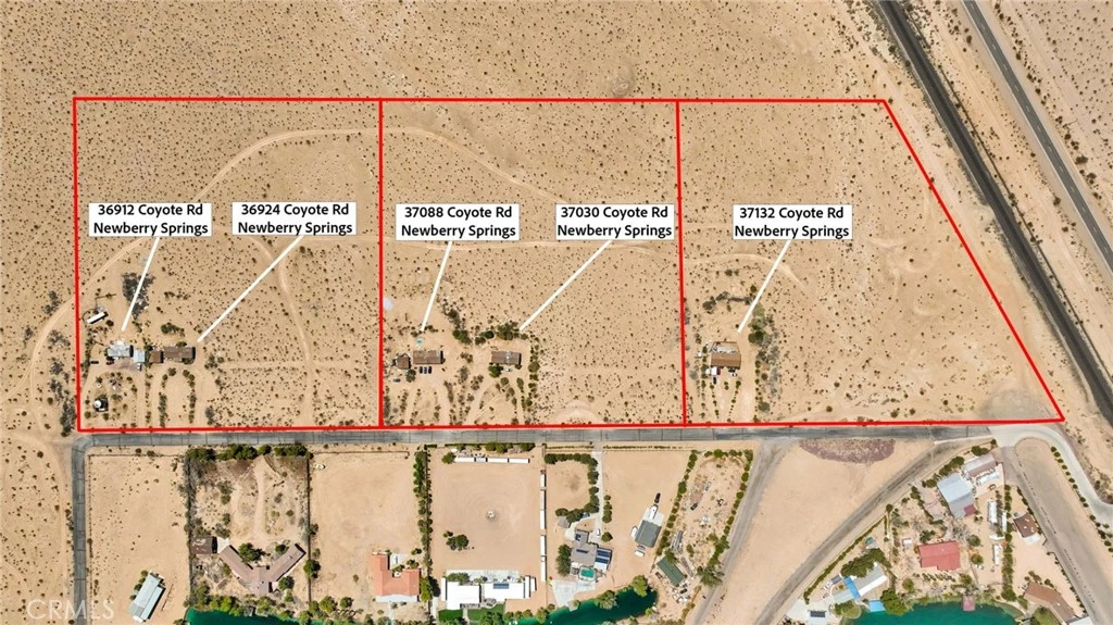 FIVE CASH FLOWING HOMES (3 of 5 Newly Renovated) 5 Homes on 25 Acres (3 Parcels) *SELLER MAY CARRY (INQUIRE) 25 ACRES 3 PARCELS (Subdivide Ready) to 4 Lots Each (Commonly Approved In This Area *Add 19 Homes (Totaling 24 Homes) Paved Coyote Lake Rd Coyote Lake Water System Underground Power Access Archeological Report Done 36924 (Newly Renovated As of November 2025) -New Roof -New Kitchen -New Bathrooms -New Stove & Microwave -New AC (Evaporative System) -New Insulated Garage Door -New Floors Thruout -New Paint (Interior) 37088 Also Newly Renovated Addresses; 36912 & 36924 (APN# 0538-261-04-0000), 37030 & 37088 (APN# 0538-261-03-0000) & 37132 (APN# 0538-261-02-0000) Coyote Lake Road. Paved access and Paved Road. Inquire on 2 of 3 or 1 of 3 Parcels (3 of 5 Houses) These parcels of land totaling 25 plus acres are on prestigious Coyote Lake Rd in Newberry Springs, California. As the original developer of Crystal Lake holds these cash flowing assets with great potential to 24 total homes - this opportunity is unparalleled. Situated on paved Coyote Lake Rd and connected to the Coyote Lake Water System, these parcels are ready for immediate utility access, making development a seamless process. Splitting these parcels into 4 lots and each having two homes is what's already commonly done here and you wont have to deal with the added subdivision red tape. An archeological study has been completed, providing peace of mind for any future endeavors. The subdivision potential is immense, with the possibility to create 9 approximate 2.77-acre lots. Each of these lots has the potential for two homes, allowing for a total of 18 new homes to be placed or built. 23 income-producing properties IS generational financial windfall. Residents can enjoy their horses, ride their toys to The Mojave River Basin directly from their homes under majestic sky and mountain views or also enjoy hikes and camping at Calico Ghost Town Regional Park. Calico Ghost Town was Designated a California Historical Landmark in 1962. Only 90 Minutes from both Vegas or Laughlin. Whether you're an investor seeking a lucrative income stream or a developer with grand visions, this property offers endless possibilities. Embrace the chance to shape this pristine land into a thriving community or an exclusive estate. Don't miss out on this remarkable chance to own a piece of Newberry Springs history and create something truly extraordinary.
