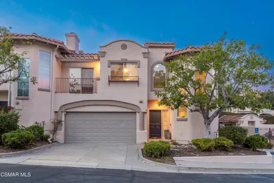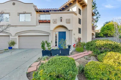 3BR/2.5BA condo in gated Los Robles Estates in Newbury Park. Main-level primary suite + loft. 2-car garage. HOA covers roof/exterior. This attached condominium is located within the gated Los Robles Estates community in Newbury Park and offers 3 bedrooms, 2.5 bathrooms, and approximately 2,148 square feet across two levels. The layout places most daily living on the main floor, with a large open loft upstairs providing flexible additional space.The main level features a vaulted-ceiling living room with a fireplace and sliding doors that open to a private patio, bringing in natural light and extending the living space outdoors. The living room connects directly to the dining area and kitchen, creating a functional and open flow for everyday use. The kitchen offers ample cabinetry, built-in appliances, and convenient access to the dining space.The primary suite is located on the main level and includes double-door entry, a private bath with separate tub and shower, dual vanities, a walk-in closet, and sliding-door access to the patio. Two additional bedrooms, a full bathroom, and a powder room are also on the main floor. An indoor laundry room and direct access to the attached two-car garage add everyday convenience.Upstairs, the open loft overlooks the living area and works well as a bonus room, home office, or secondary living space. The home includes both front and rear patio areas, offering multiple outdoor areas within the unit.The HOA covers the exterior structure and roof. Community amenities include pools, spas, playing courts, and maintained common areas. The air conditioning system is approximately 11 years old, and the home includes a 50-gallon water heater. Monthly HOA dues apply. The location provides convenient access to nearby shopping, dining, and major roadways.