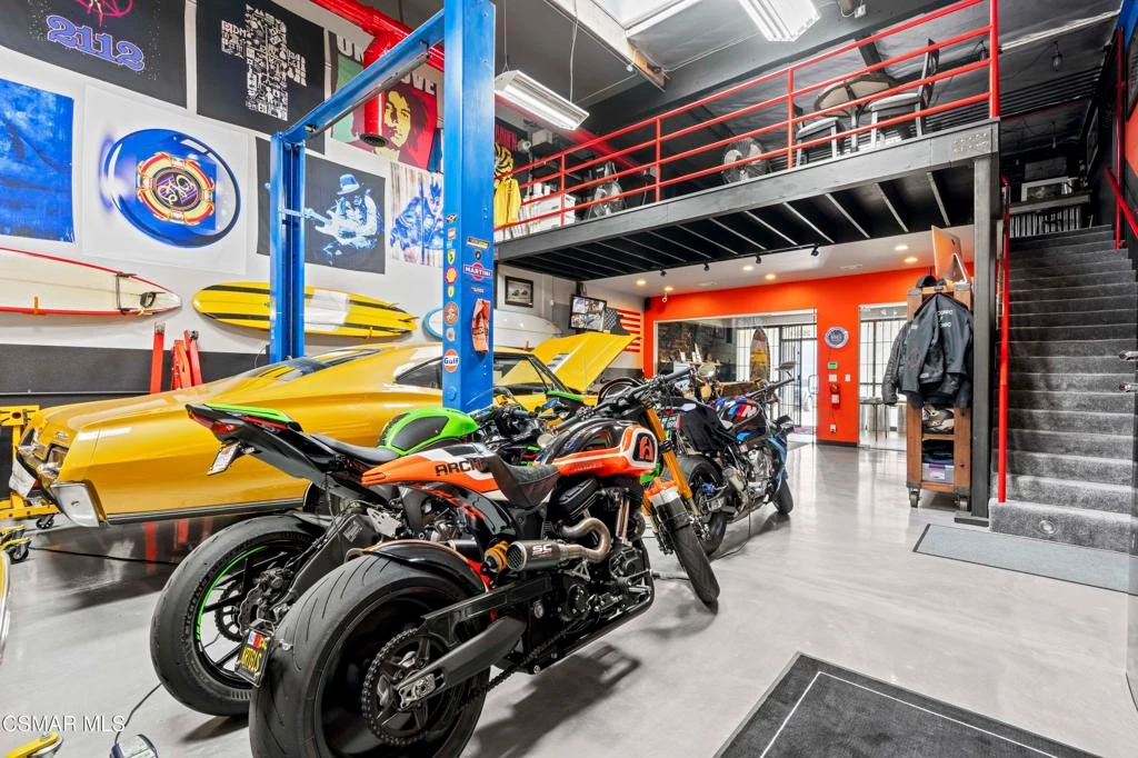 Rare opportunity to own a fully upgraded industrial car condo in the heart of Newbury Park, designed specifically for the serious collector or automotive enthusiast. This turnkey unit is the ultimate private showroom and storage space, thoughtfully built out with premium finishes and an expanded mezzanine to maximize functionality and style.The main level offers pristine, open warehouse space ideal for showcasing and storing your collection. High ceilings and clean architectural lines create a true gallery feel, while upgraded lighting highlights every detail of your vehicles. The expanded mezzanine adds significant usable square footage and features a private office overlooking the showroom floor, allowing you to work while enjoying a full view of your collection below.A full bathroom with shower and custom bar setup elevate the space beyond simple storage, making it perfect for entertaining, hosting private gatherings, or spending extended time on-site. Every detail has been completed, making this unit completely move-in ready with no additional buildout required.Whether you are a collector seeking a secure and sophisticated home for your cars, a business owner looking for a high-end automotive workspace, or an investor targeting a niche asset class, this Newbury Park car condo delivers versatility, style, and long-term value.A true car collector's dream and a rare offering in one of Ventura County's most desirable industrial communities.