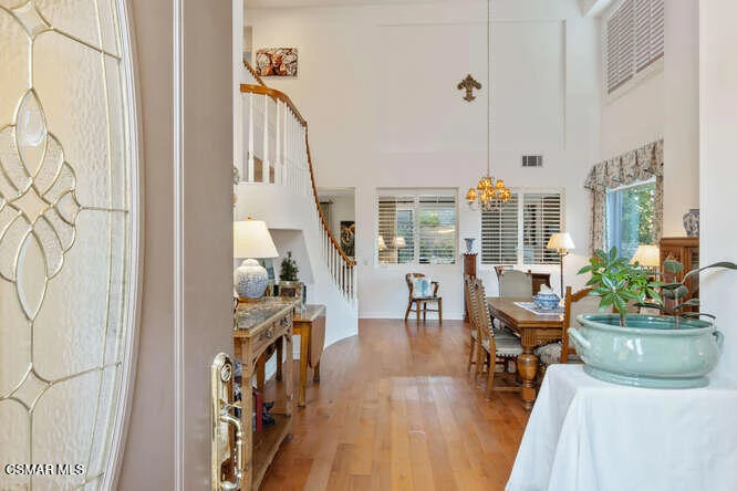 Fabulous location in Treasures of Dos Vientos Ranch. Classic elegance. Beautiful design. The peaceful location is near the top of the street with complete privacy and views of Boney Mountain. Step inside to high ceilings, beautiful wood floors, and white walls. Gorgeous Cook's Kitchen was re-designed a few years back. Viking appliances, huge expanded island, and added cabinetry with coffee bar area and a workstation. this floor plan is an open 2,763 sq ft with 4 bedrooms, 3 baths and an additional bonus room/office/yoga room located downstairs. One bedroom/bath is located downstairs for guests. The laundry room is conveniently located upstairs.The pretty primary suite has views over the hilltops towards North Ranch. A new A/C was installed in 2023. There is lots of outdoor space with forever skies. The backyard will surely delight gardeners. Brick patios and planters, a huge side yard with green grass and Boney Mountain views. The property backs to natural parkland for complete privacyDos Vientos Ranch is a popular destination for homebuyers in Ventura County. Featuring miles of hiking & biking trails, numerous parks and ballfields, top-rated schools, your forever home is found here!