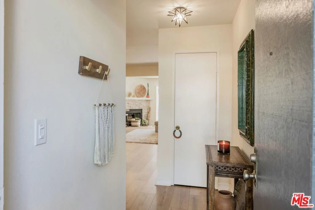 Experience the epitome of modern, turnkey living in the highly coveted Amberwood community. This stunning bottom-floor residence has been meticulously upgraded, offering a seamless blend of sophisticated style and comfort. The chef-inspired kitchen features sleek quartz countertops, custom cabinetry, and elegant pendant lighting. A spacious living room, anchored by a contemporary stone fireplace and plantation shutters, flows through new dual-pane sliders to a private, professionally landscaped backyard. Relax in your fully enclosed sanctuary featuring vinyl fencing and serene mountain views. The primary suite boasts a remodeled bathroom with a double-sink quartz vanity and a premium tub/shower. Exceptional upgrades throughout include new Lifeproof LVP flooring, designer recessed lighting, upgraded baseboards, and a high-end front swinging screen door. Key systems offer peace of mind with a newer HVAC (approx. 6 years old). Residents benefit from a private 1-car garage, an additional assigned space, proximity to guest parking, and access to two sparkling community pools and spas. Ideally located near Amgen, premier shopping, dining, and easy 101 freeway access, all while enjoying a quiet atmosphere with zero noise pollution.