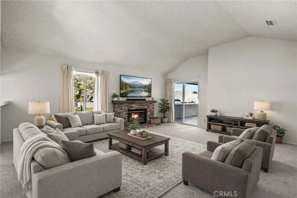 Check out this single story in the best location in the Friendly Valley community! Tucked at the end of the street and surrounded by green space with no rear neighbors, this home offers exceptional privacy and a peaceful setting. This lovely single-story is an attached 2 bedroom home in the 24-hour guard-gated Friendly Valley senior community. A well-maintained 2 bedroom, 2 bathroom floor plan features family room and both bedrooms with sliding glass doors opening to the patio. Additional highlights include an attached two-car garage with direct access and a private driveway. The light and bright kitchen offers new stainless steel appliances, ample cabinetry, and a charming garden window. The spacious family room with a brick fireplace and slider to the patio. The primary bedroom includes mirrored closets and an ensuite bathroom, while the secondary bedroom offers generous closet space and patio access. Recent updates include fresh interior paint and updated kitchen and bathroom flooring. The HOA covers exterior paint, roof, landscaping surrounding the home, basic cable, internet, trash service, and guard-gated security. Community amenities include golf courses, pool and spa, fitness center, clubhouse, auditorium, card and game rooms, hobby and craft rooms, billiards, library, wood shop, RV parking, and more. Come see this special home and enjoy the Friendly Valley lifestyle!