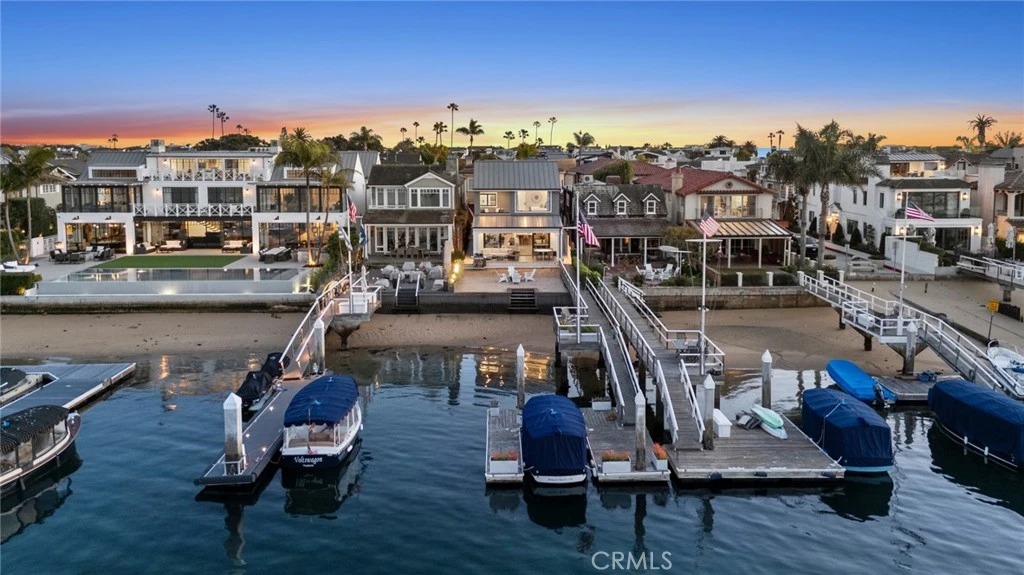 Enjoy twinkling city lights and panoramic Newport Harbor views from one of the preeminent addresses on the bay front – exclusive East Bay Avenue within the charming enclave of Peninsula Point. Exquisitely redesigned with a “to the studs” remodel, this on-point 4BR/4.5BA bay front residence was thoughtfully reimagined to check all of the boxes. With an open-concept layout, well-proportioned room sizes, and bespoke designer finishes, this harbor front home is easy to love. Stepping through the Dutch door entry you are greeted by coastal breezes and an inviting sense of home. The open living and dining areas are highlighted by finely crafted built-ins, state-of-the-art AV equipment, a cozy fireplace, and walls of glass that open to a covered and heated bay front patio and sandy beach that adjoin the private pier and dock. The professional-grade island kitchen is highlighted by a Majestic range, Sub-Zero and Bosch appliances, abundant storage and a separate walk-in pantry. An en-suite bed and bath are also conveniently located on the first floor of the home. Upstairs the primary suite with private terrace and expansive water views is designed for relaxation. Soft neutral tones and luxurious textures create a calming ambiance, while the spa-inspired ensuite bath features a deep soaking tub, rainfall shower, and dual vanity. Two additional guest bedrooms and baths have been finely curated with hand-selected finishes and welcome guests with comfort and style. The entertainment enthusiast will enjoy the stylish upper level media retreat. Here rich textures, moody lighting and culled nautical touches create a cinematic atmosphere at home. Enhanced by disappearing custom Murphy beds, this dramatic space also easily accommodates visiting family and friend over-flow. Additional amenities include an attached two car garage with adjacent third car parking pad, upstairs laundry room, beach shower, tailor-made garage built-ins, whole-house water conditioning, and exterior gas lanterns. Sited on one of the most scenic parts of the harbor this turn-key home is a remarkable opportunity in the very best of bay front locations. From sunrise coffee on your private dock to sunset wine with friends back at the house after a Duffy ride get ready to enjoy life on the harbor!