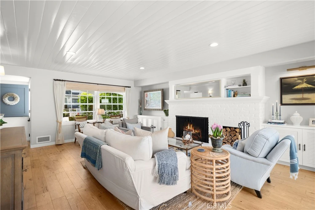 Welcome to 213 Via Mentone, a mid-island gem in the heart of Lido Isle, offering four bedrooms and three baths in 2444 square feet of elegant living space. Completely remodeled in 2018, this residence is replete with natural light throughout, an open, inviting floor plan, and impressive indoor and outdoor entertaining spaces, all strategically positioned on an oversized, street-to-strada 40-foot lot. The charming brick walkway curves to the hidden front Dutch door – step inside to a stunning living room with original wood-burning fireplace, new built-ins and custom shiplap ceilings. The guest bedroom and ¾ bath are found on the first floor, as is the gorgeous Chef’s kitchen, featuring a Viking Pro range, oven, and refrigerator, as well as Bosch and Sharp appliances. The spacious marble island centers the room and offers a breakfast bar and hidden microwave. Adjacent is the inviting family room, with a soaring ceiling, additional wood-burning fireplace, and stunning oyster-shell chandelier. Another Dutch door leads to the side yard and strada, while sliding glass doors open onto the patio, completely re-imagined in 2020. Here you’ll find a built-in barbecue and large fire pit with seating as well as plenty of room for dining al fresco. Custom double doors offer privacy when desired and open onto the lush backyard, complete with white picket fence. Upstairs, private living spaces include the Primary Suite with custom built-in closets and an en suite bath. Two additional bedrooms are bathed in light and feature large windows, open to fresh ocean breezes. An added full bath offers a double vanity and tub/shower combo. Luxury fixtures and finishes, new wood floors throughout, custom storage cabinets, and a singular attention to detail in this updated coastal home create a turn-key opportunity for the discerning buyer. Enjoy private beaches, docks, and parks, tennis, basketball and pickleball courts, the Lido Island Yacht Club, endless stradas, and a clubhouse all dedicated to the enjoyment of life within this special island community. A short distance to Lido Village, the surrounding shops and restaurants, and endless white sand beaches ensure an idyllic lifestyle in the most desirable neighborhood in Newport Beach.