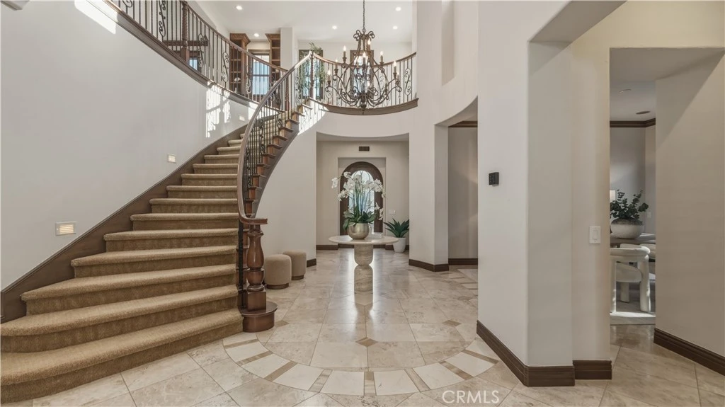 Set within the prestigious guard-gated Coastal Canyon enclave of Sausalito, this thoughtfully upgraded residence is ideally positioned at the end of a quiet cul-de-sac, offering enhanced privacy and a peaceful setting surrounded by open green spaces. The expansive, light-filled floor plan features four generously sized bedrooms, four full bathrooms, powder room, dedicated office, and a spacious bonus room. Designed for seamless indoor-outdoor living, the main living areas open to multiple entertaining patios, a custom built-in bar and barbecue area, and a private resort-style pool and spa—creating an inviting environment for both everyday living and gatherings. An upper-level deck provides tranquil ocean views and additional outdoor space to relax and unwind. Interior upgrades include travertine flooring throughout much of the main level, new carpet, custom crown moldings, extensive woodwork, and fresh interior paint throughout. The gourmet kitchen is appointed with Viking and Sub-Zero appliances, granite countertops, ample cabinetry, and opens directly to a spacious great room ideal for entertaining and casual living. The home is complete with a main-level primary suite and a secondary guest bedroom, offering exceptional convenience and flexibility for guests or multi-generational living. The property offers both tranquility and convenience, just moments from premier shopping, world-class dining, and Southern California’s finest beaches.