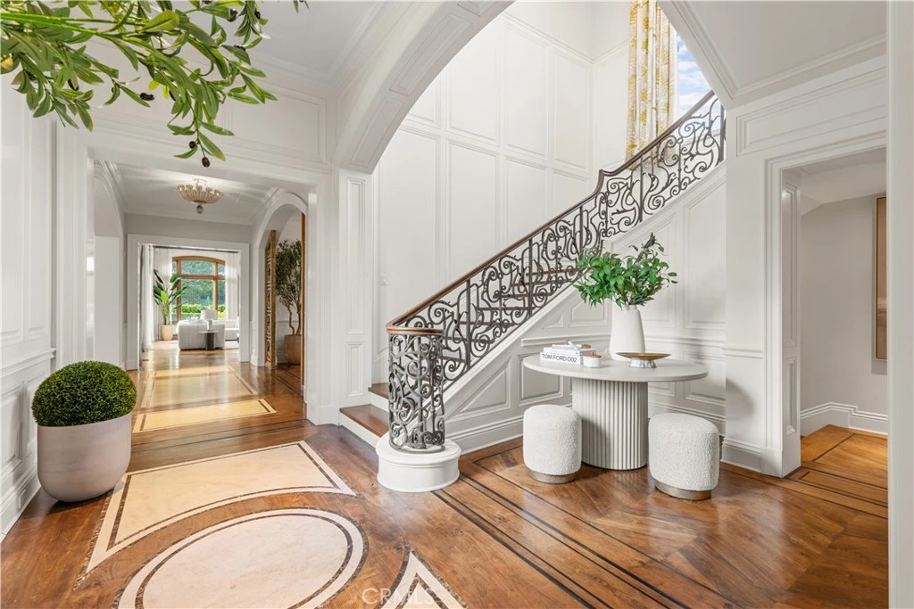 Set on a rare double lot just steps from the Pacific Ocean, 7 Shoreview is acclaimed as one of Pelican Point’s most significant architectural estates—a gated coastal compound conceived for multigenerational living, privacy, and timeless design. Encompassing approximately 11,000 square feet, the residence commands over half an acre of manicured grounds with serene golf course and garden views, located within Newport Coast’s only oceanfront, guard-gated enclave with private access to Crystal Cove State Beach. Crafted by master artisans, the home blends hand-selected woods, honed natural stone, wrought iron, and classical detailing, creating interiors that feel warm, enduring, and deeply refined. A dramatic sequence of formal living and dining spaces gives way to a wood-paneled library, expansive chef’s kitchen, multiple family lounges, and a day-lit lower level designed for wellness and recreation—complete with a steam-room and elevator. French doors throughout dissolve the boundary between indoors and out, leading to a true resort environment: a sparkling pool and spa, pool pavilion with kitchenette and bar, outdoor fireplace, and a collection of covered and open-air terraces that form a series of intimate outdoor retreats. Mature trees and sculpted gardens envelop the property, reinforcing its sense of seclusion. Designed for modern family life, the estate features two main-level guest suites ideal for in-laws or guests, and an expansive primary retreat with sitting room and spa-inspired bath with heated floors. An oversized four-car garage adds convenience and functionality to the compound layout. All of this sits within Pelican Point—the only community in Newport Coast west of Pacific Coast Highway—offering 24-hour guard-gated security, direct gated access to the sand, and proximity to the Resort at Pelican Hill, Crystal Cove Promenade, and the best of coastal Orange County.