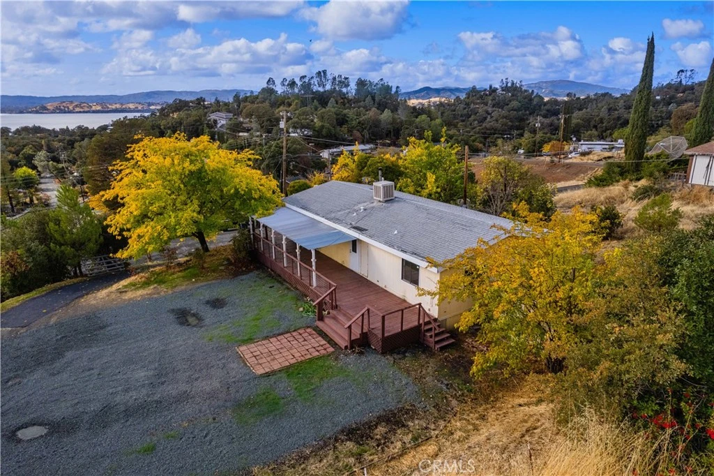 Desirable spot on over a third of an acre with beautiful lake views. Two bedrooms and two baths, this manufactured home offers a spacious living room, highlighted by a cozy freestanding wood stove and direct access to a wrap-around deck -perfect for taking in the surrounding natural beauty. The dining room, with its built-in hutch is the perfect spot to gather for meals. The primary bedroom offers ample space, a large closet, and a private bath. The property also includes a gravel parking area, and a handy storage shed, as well as a flat, open yard ideal for outdoor activities. Embrace the serene lifestyle with this affordable home complete with captivating lake views.