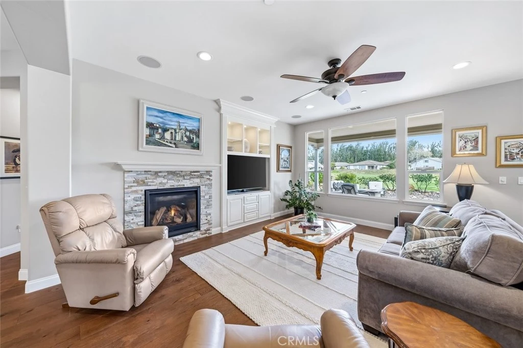Positioned along one of the Trilogy Monarch Dunes most captivating stretches of golf course, this elegantly remodeled residence offers a rare blend of updated, on-trend finishes along with sweeping views extending down the fairway, tranquil lake, and the mountain range background. The setting feels open, tranquil, and endlessly scenic—an exceptional backdrop for central coast living. A charming front porch and glass-accented entry door are the perfect welcome for friends and family. Inside, luxurious hardwood floors and recently remodeled kitchen, beautifully appointed with crisp white cabinetry, stone slab countertops, a classic subway tile backsplash, double oven, new microwave, and a buffet bar with a wine refrigerator are some of the recent upgrades. The open floorplan features a redesigned top-tier gas insert with stacked-stone surround and entertainment center and almost every room is positioned to overlook the lush fairway and lack and provide easy access to the landscaped yard. The primary suite offers a luxurious retreat, complete with a fully reimagined spa-inspired bathroom. Quartzite countertops, a walk-in shower, new lighting, and complementary tile floors create a spa-like experience. Additional conveniences include a separate Den/office, dining room and two-car garage with an extended workshop area—ideal for hobbies, storage, or creative pursuits. This home offers optimized outdoor living. An expansive patio provides multiple areas for dining and lounging, while the covered patio ensures year-round enjoyment. A tranquil water fountain, and the panoramic views of the golf course and lake offer a picturesque backdrop from sunrise to sunset. This exceptional, remodeled home presents an opportunity to own a move-in ready home with premiere golf course views and a setting defined by natural beauty and timeless appeal.