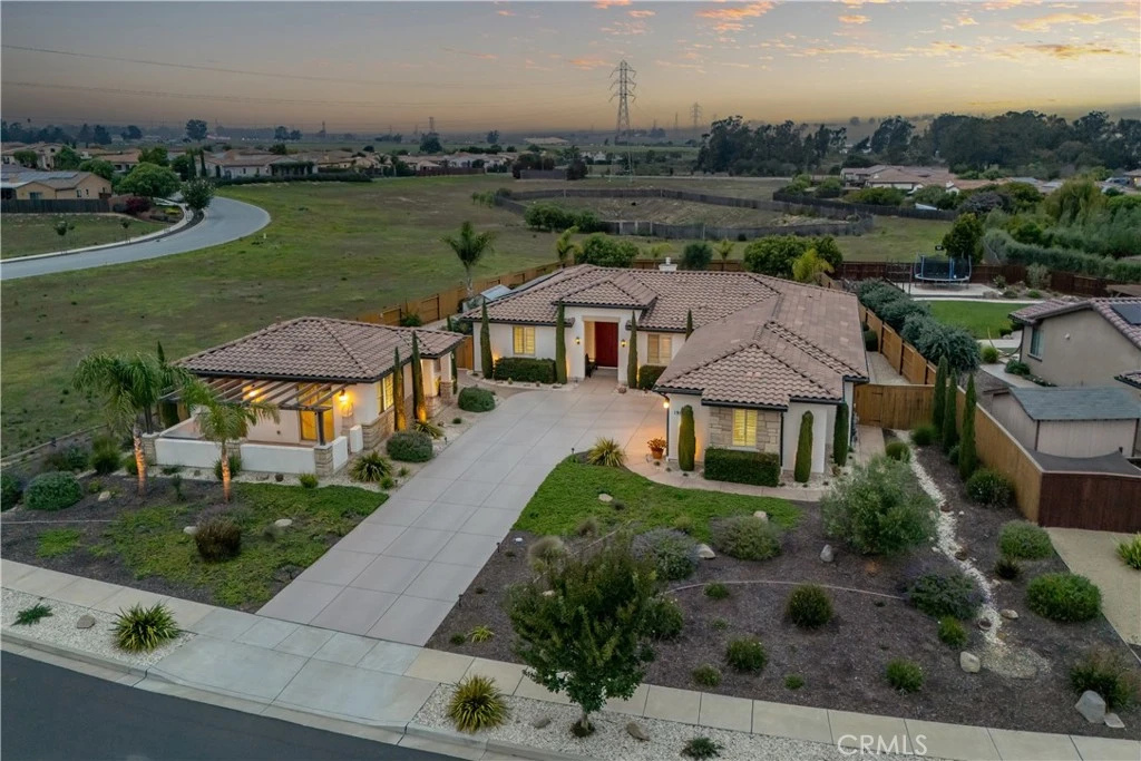 Multi-generational living or income producing opportunity in the exclusive Enclave at Costa Pacifica community, which is perfectly positioned to enjoy the natural beauty of the Nipomo Mesa and the special lifestyle the Central Coast offers. Situated on an elegantly landscaped, nearly one-half acre parcel, this single level residence features a versatile layout with nearly 2,800 square feet of living space, four spacious bedrooms, four luxuriously appointed baths, and a detached one bedroom and one bath guest house. The home features upscale finishes like voluminous ceilings, smooth trowel-finished walls, and 8' interior doors, along with approximately $85,000 in upgrades, including plantation shutters, since its construction in 2016. A comfortable space to unwind after a day of wine tasting in Santa Maria Valley or relaxing at Pismo Beach, the living room includes a cozy fireplace with a concrete mantel/hearth, and dual sliding doors. The heart of the home, the kitchen, is an entertainer’s dream. An expansive island with bar seating, pendant lights, and granite counters with a stone backsplash makes it both functional and stylish. Further enhancing the space is premium cabinetry with soft-close doors/drawers, stainless steel appliances with an included refrigerator and hood vent, a sunny breakfast nook, and an adjacent dining room. The owner’s suite, a private upscale retreat, offers a spacious walk-in closet, rear patio access, and en-suite bath featuring dual sinks, tiled counters, soaking tub, and a walk-in shower with a frameless glass enclosure. Three secondary bedrooms in the main residence, including one with an en-suite bath, provides plenty of room for guests, and offers flexible uses including a home office or fitness space. The one-bedroom detached casita features a living room, kitchenette, washer/dryer, and a large private patio. The outdoor spaces complete the elevated experience this property offers. An expansive stamped concrete patio, lush park-like setting with lawn, pepper and olive trees, and landscape lighting set the stage for relaxation. The backyard features a firepit, flagstone walkways, garden area with fruit trees, stained fencing, and patio cover with skylights-perfect for hosting BBQs while soaking in mountain and sunset views. Additional highlights include a three-car garage, laundry room with sink and included washer/dryer, storage shed on concrete pad, tankless water heater, owned solar system, and a water softener.