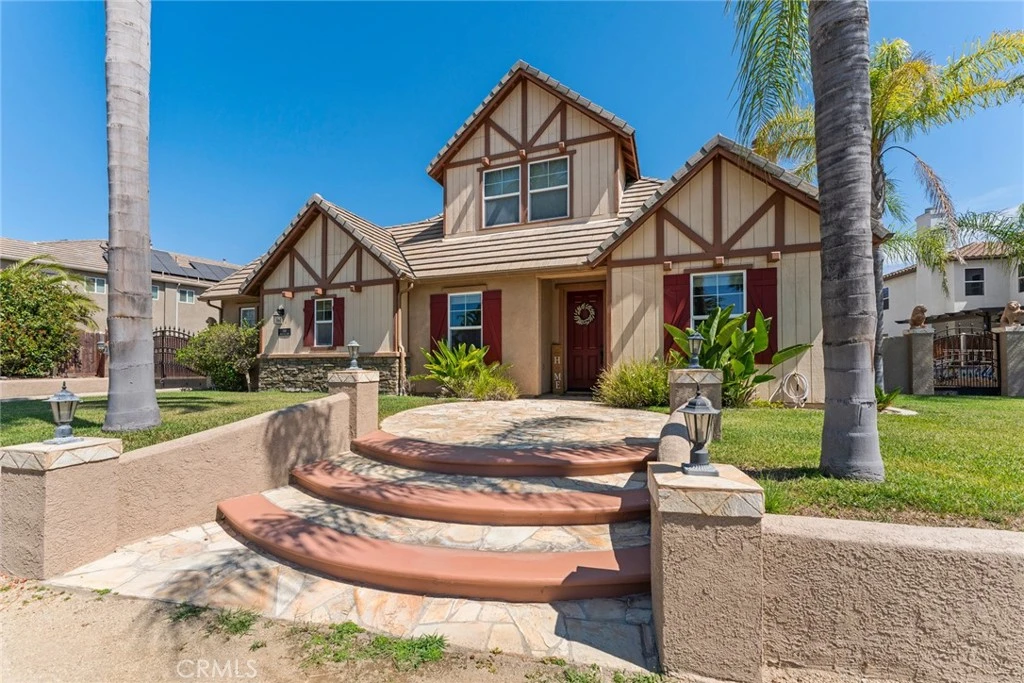 Welcome to 249 Cross Rail Ln, a stunning 4-bedroom, 3.5-bathroom home in the heart of Norco, CA. This spacious 4,126 sq. ft. residence sits on a unique, fully level 0.46-acre lot, offering unobstructed views of the adjacent golf course. The main floor boasts a luxurious master suite with an attached bonus room perfect for a gym or nursery, as well as a versatile space near the entrance that can easily be converted into an additional bedroom. Upstairs, you'll find a guest suite and a dedicated home theater. Recently updated, the home features custom paint throughout. The main living areas on the first floor have beautiful tile flooring, with laminate wood flooring in the bedrooms, and carpeting upstairs. The backyard, previously a grassy area, now provides a blank canvas with significant upgrade potential for new owners. In winter, enjoy the picturesque green shrub-covered hills and snow-capped mountain scenery. Located in a tranquil, horse-friendly community, this property offers an ideal lifestyle for those seeking elegance and space. Schedule your viewing today to explore the endless possibilities this home offers!
