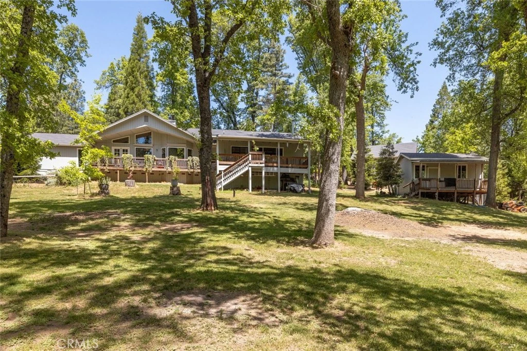 Welcome to this serene park like setting custom home in the prestigious beautiful Teaford Meadows Ranch with matured landscaping and only 4 miles from Bass Lake and 18 miles from Yosemite south entrance. Located on 5.05+/- acres with a creek running through is a spacious one story 3 bedroom, 3 bath and 2383+/- sq. ft. living with custom woodwork throughout making a wonderful mountain feel. Enjoy the secluded meadow views and wildlife from any of the covered patio or decks with privacy at the end of the cul-de-sac. The property offers amble parking and a fenced area for animal lovers. A true gardener's delight to grow plants with your own private well and 2 storage tanks. The home has a gourmet kitchen and 2 fireplaces. The primary suite has built-in desks and book cases with it's own propane fireplace and sliding door to a private deck and feel the breeze. There is a detached 2 car garage and a Tuff shed providing great amount of storage space. But wait there's more, a guest house that has a bathroom and power along with a children’s play area with swings. Call to find out more or schedule showing to view what this has to offer!