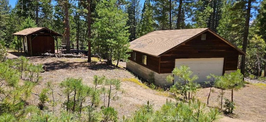 Rare opportunity to own 3 structures on over 1.56 Acres. This is a High Sierra Meadows Cabin/Shop/Garage in the pristine Arnold Meadows gated community. Large open floorplan that can accommodate a large family. Includes RV covered trailer and patio for early morning coffee and late night wine session. Private bath house with running hot water/ septic and shower. HOA includes community water, community pond for fishing with the little ones and paved roads. The gated community is surrounded by national forest land and short drive to fishing, hunting and hiking.