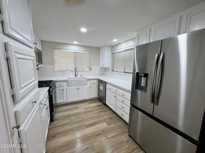 Welcome to this beautifully remodeled end-unit condo in the highly desirable NoHo Arts District. Enter through the oversized front door into a bright, open-concept living space. The spacious living and dining area features high ceilings and abundant natural light, while a decorative fireplace with a custom mantle creates a warm and inviting atmosphere. Through an elegant archway, the upgraded chef's kitchen showcases custom cabinetry, Quartz countertops, stainless steel appliances, a beverage fridge, and an impressive range with built-in griddle and grill--perfect for cooking and entertaining.The generously sized secondary bedroom includes custom closet cabinetry for optimal storage. The upgraded hall bathroom features new sink and lighting fixtures along with a large tub and shower with a brand-new shower head. The spacious primary suite, located toward the back of the home for added privacy, offers built-in closet cabinetry and a large en-suite bathroom with dual sinks and a luxurious spa-like walk-in shower. Step outside to your private balcony surrounded by mature landscaping, creating a peaceful retreat ideal for relaxing or enjoying your morning coffee. Additional features include luxury wide-plank vinyl flooring throughout, recessed and dimmable lighting, in-unit laundry, a Ring doorbell system, Nest thermostat, tankless water heater, and secure code-gated entry for added peace of mind. The building is beautifully maintained, with the roof completed just a few years ago and serene common areas throughout. This unit includes two parking spaces and is conveniently located near some of the best shopping, dining, gyms, and grocery stores Los Angeles has to offer, with easy access to everything the vibrant NoHo Arts District provides.