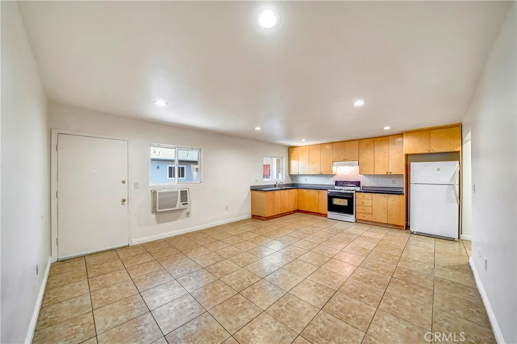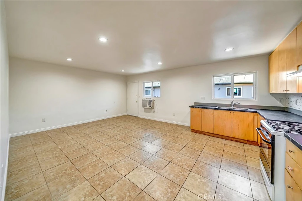 Welcome to this bright and spacious 1-bedroom, 1-bathroom apartment offering approximately 900 square feet of comfortable living space. Thoughtfully designed with functionality in mind, this unit is move-in ready and filled with natural light. The open kitchen features sleek granite countertops, ample cabinet storage in warm natural wood tones, and appliance including a gas stove. Overhead recessed lighting and a large window by the sink keep the space light and airy, making it ideal for everyday cooking and entertaining. The bedroom is generously sized with tile flooring throughout, a large window for natural light, and a built-in wall A/C unit for added comfort. You'll love the extensive built-in closet system featuring drawers, cabinets, and hanging space — perfect for staying organized. The bathroom is clean and well-appointed with a subway-tiled shower/tub combo, granite vanity counter, and modern fixtures. The warm wood cabinetry provides extra storage while keeping the space inviting.