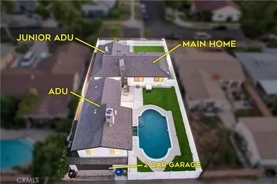 2 charming tastefully remodeled, 6 bdrm/5 bath, energy efficient homes for the ideal investment or ideal home await!! Save $ on utility bills with a total of 28 solar panels. The primary courtyard is accompanied by RV access and the property just gets better and better. You will be greeted by modern fencing combined w/ partial block wall for ultimate privacy. The main home includes LVP flooring throughout, recessed lighting, 2 bdrms in the front that share a fully remodeled bdrm with modern finishes and Qtz ctops. A large third bdrm combines luxury and privacy as it's equipped with his and her own individual spacious closets with double hang/drawers/shelves. A bathroom-like spa awaits as you step into a shower covered head to toe in modern ceramic tiles, a freestanding soak tub and double sinks with Qtz ctops. Relaxing/entertaining family/guests in the living room is exactly what this open living floor plan is perfect for. Enjoy preparing meals in a cute kitchen with elegant ceramic tiled back splash, Qtz ctops, gas range and SS appliances. Access the backyard with ease by a secondary back door that leads to the detached and remodeled garage with its own full size bathroom, LVP flooring, side pedestrian door and hookups for washer/dryer. A newly constructed Spanish-style ADU is the highlight of the property. An inviting attached Calif-style patio wrapped in wrought iron, a large modern retaining wall and succulent plants will greet you as you approach. A spacious versatile Grand Rm seamlessly flows throughout the open front layout. Convenience, style and low-maintenance all come together in the kitchen with a long island, centered electric stove, stainless steel range and upgraded SS appliances to match. All 3 bdrms have ceiling fans and large closets. Laundry tasks will be an easy task with a new stackable washer and dryer. Step into the gorgeous primary bathroom with a walk-in shower and single vanity. The 2nd bath provides a shower/tub and single vanity Agent Remarks: *SOLAR PAID OFF* ALL ADDITIONS ARE PERMITTED *Fire Sprinkler System at ADU *2 Tesla electric vehicle charging stations *All kitchen appliances in both homes and 2 sets of washer/dryers are included *Rain Gutters replaced in 2023 *new roof on main house and garage in 2023 DO NOT let this amazing opportunity to own two homes slip away!! *CCTV 24/7
