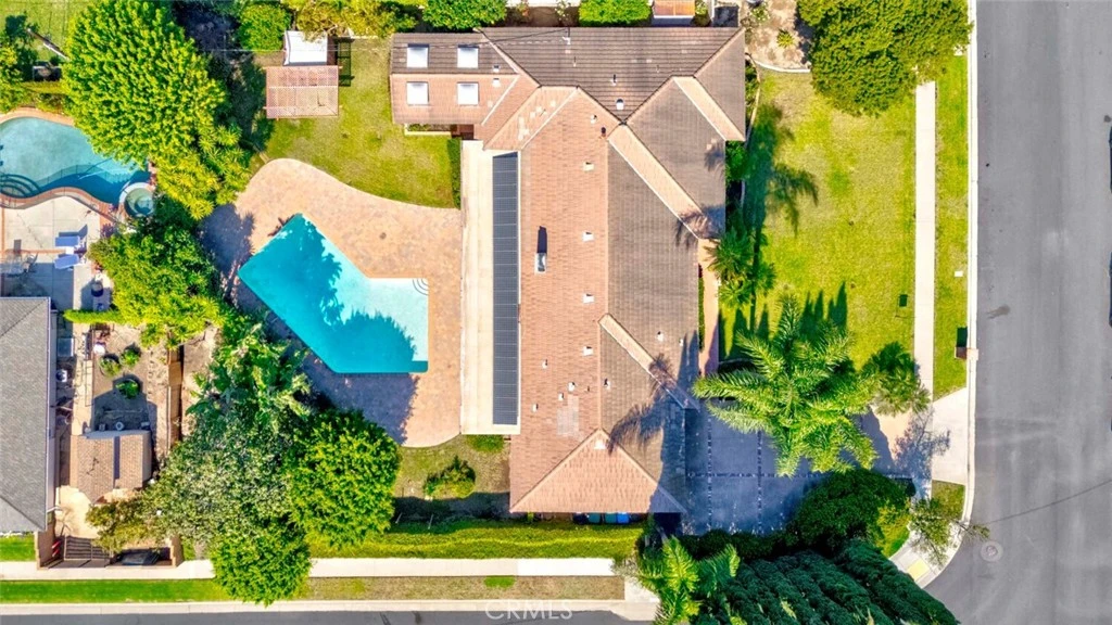 Welcome to this beautifully maintained four-bedroom, three full-bathroom ranch-style home situated on a stunning 0.41-acre corner lot in one of North Tustin’s most desirable neighborhoods. This private oasis features lush, well-manicured landscaping and a variety of mature citrus, and avocado trees, creating a peaceful outdoor setting. The backyard is designed for relaxation and entertaining, complete with a large swimming pool, inviting back porch, and a full sprinkler system to maintain the property’s vibrant grounds. Inside, the 2,450-square-foot home offers a warm and welcoming atmosphere with a comfortable, family-friendly layout and spacious living areas. The home features two fireplaces, a large family room and living room, and convenient laundry hookups. Included are owned solar panels, providing energy efficiency and long-term savings. The primary suite includes a unique private spa room retreat, offering a serene space to unwind directly connected to the bedroom. Located just minutes from shopping and dining at the Tustin Foothills, this home also falls within the highly regarded Tustin Unified School District. Don’t miss the opportunity to own this exceptional property that combines space, privacy, and prime location in North Tustin.