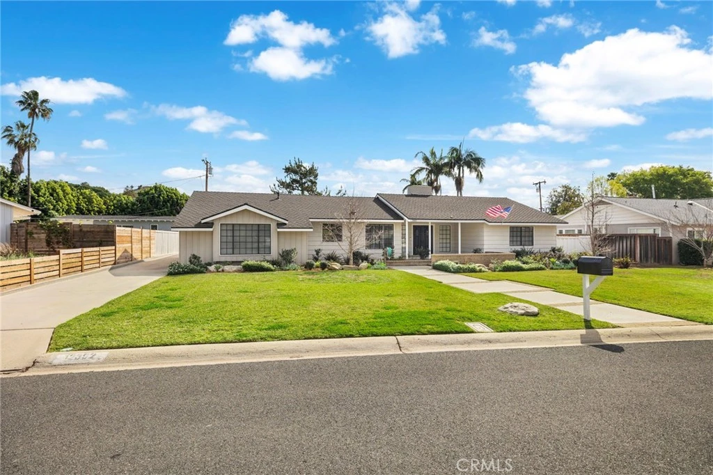 Completely remodeled and ideally situated in the heart of North Tustin, this single-level cul-de-sac street. Luxury vinyl flooring runs throughout the main living areas, creating a cohesive and sophisticated feel.The expansive fourth bedroom offers incredible flexibility and may be used as a bonus room, secondary living area, or fitness space, featuring over 15 feet of sliding glass doors opening to the backyard. The gourmet kitchen is designed for both style and function, with a casual eat-in dining area, large quartz island with designer tile backsplash, white cabinetry with soft-close drawers, farmhouse sink, five-burner gas range with hood, and stainless steel appliances. Open to the kitchen, the spacious dining and living rooms showcase a fireplace, wall-to-wall windows, and a charming Dutch door that frames views of the oversized backyard. The expansive fourth bedroom providing flexibility to suite any need features a fireplace, skylight, abundant built-in shelving and storage, and two sets of sliding glass doors spanning more than 15 feet to the backyard. The primary retreat is complete with French doors, fireplace, skylight, and a luxurious ensuite bathroom offering dual vanities, a tiled walk-in shower with glass enclosure, and a cedar-lined walk-in closet. Secondary bedrooms feature plush carpeting, shutters, and ceiling fans. One secondary bathroom includes dual vanities, a tiled tub and shower combination, designer fixtures and a seamless partial glass enclosure, while the additional bathroom offers a guest shower and single vanity. Additional highlights include an inside laundry room with cabinetry and ample storage, a long driveway leading to a large rear parking area, and a two-car garage with storage. The expansive lot features a partially covered patio and a generous grassy area, ideal for entertaining, relaxing, or play.