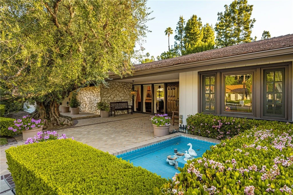 Beautiful Custom Built Ranch-Style home on one of Lemon Height's most sought after streets. The approach to the property is a wide flat street of similarly elegant custom homes with mature trees and lush landscape and the neighborhood is within walking distance to a back path directly into the Tustin Hills Racquet Club which offers tennis, pools, pickleball, classes, a gym and pilates. This elegant single story home with no interior steps is set on a sprawling almost half-acre lot with beautiful landscaping, a giant covered patio, charming gazebo and oodles of rolling green lawn. Meticulously designed for elegant entertaining and daily enjoyment, some of the interior highlights include handsome oak paneling and built-in bookcases, solid oak doors, French doors with beveled glass, floor-to-ceiling glass entry walls, two inviting fireplaces, and a fun walk-in wet bar. The floor plan is perfectly designed with ample living spaces that looks out to the pristine grounds. The formal living room is finished in fine box paneling and includes a marble-faced fireplace. The informal family room offers a second fireplace, game table and fun wet bar. A large dining room invites entertaining and the sunny kitchen opens to the family room and features a full breakfast nook. Bedrooms were well-designed with three bedrooms on one wing and a separate bedroom and bath on another. The primary bedroom opens to the covered patio and includes a lovely bath with step down shower and adjacent shade patio. The two additional bedrooms on this wing are elegant and oversized and share a bath. The guest or in-laws wing has it's own bath and is currently used as a home office. The home also includes a laundry room and powder bath. The garage faces the rear of the property and there is ample driveway space and parking. The North Tustin community offers award-winning schools, Peter's Canyon Regional park, close proximity to freeways - but feels like a world away! Beaches are 18 miles away. Mountains an hour and a half. Offered fully furnished, just bring your suitcases and move right in and start enjoying!