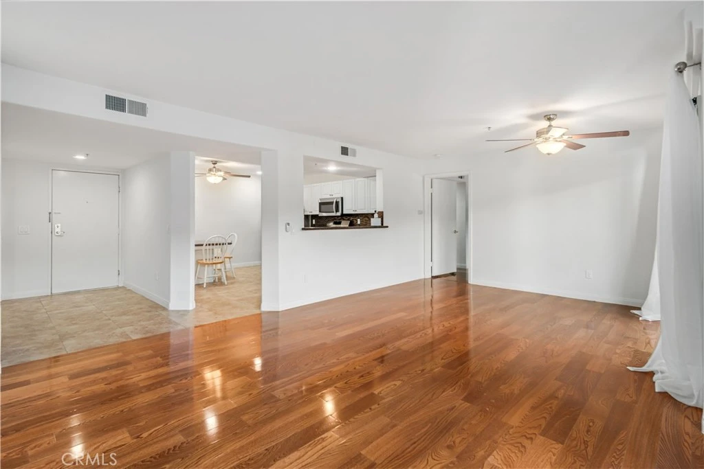 Welcome to UNIT 112 this spacious and beautifully updated single-level 2-bedroom, 2-bath condo offering comfort, privacy, and resort-style living in a gated community. A formal entry opens to a light-filled living room featuring wood flooring, upgraded light fixtures, fire sprinklers, and blackout shades throughout. A large private balcony stretches the full length of the unit, creating seamless indoor-outdoor living. The kitchen is well-appointed with granite countertops, upgraded cabinetry, stainless steel appliances, a refrigerator included, recessed can lighting, a ceiling fan, and tile flooring. Adjacent indoor laundry includes a washer and dryer, plus a smart thermostat for added efficiency. Both bedrooms are generously sized and thoughtfully positioned on opposite sides of the unit for maximum privacy. Bedroom one features wood flooring, a walk-in closet, a linen closet, and an en-suite bath with a large tiled walk-in shower and Corian countertops. The primary suite offers wood flooring, two closets, including a walk-in, and a spacious bath with dual sinks, Corian counters, and a large soaking tub. Recent upgrades include fresh interior paint, a new heat pump, a new refrigerator and garbage disposal, updated bathroom vanities, sinks, and faucets, quartz upgrades, and enhanced lighting throughout. Community amenities include a pool, spa, sun deck, fitness center with pool views, sauna, gated entry, secured building access, two side-by-side underground parking spaces, and a large private storage room. FHA & VA approved. HOA dues are $645/month and include insurance and water. Ideal Northridge location near shopping, dining, and CSUN. Welcome home.