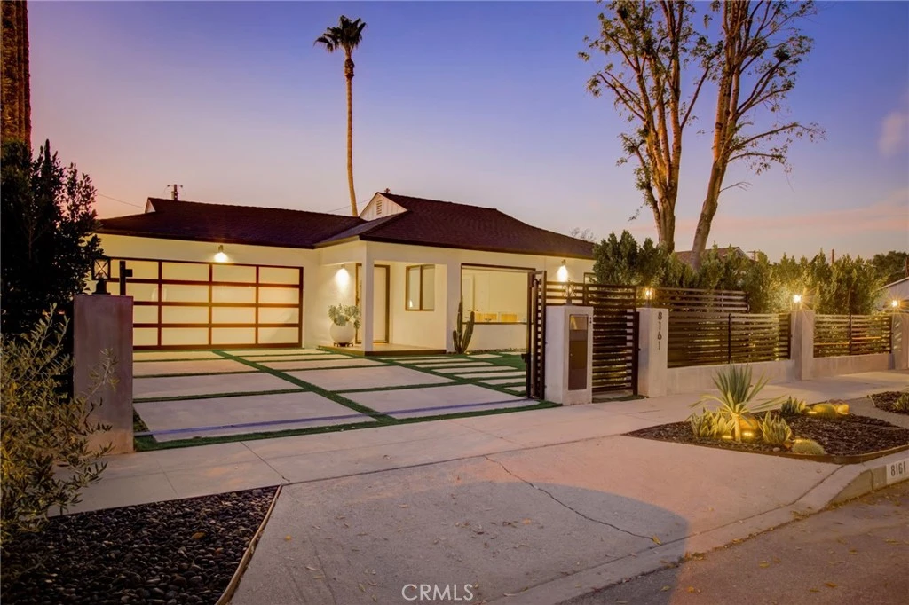 Welcome to 8161 Encino Ave, a stunning contemporary haven in Northridge, California. This 4-bedroom, 3-bathroom masterpiece has undergone a complete remodel, embodying modern design and sustainable living. As you enter through the secure and gated entrance, you'll notice the low-maintenance ficus trees enveloping the property for ultimate privacy. The exterior showcases a Santa Barbara finish, complemented by larger windows that flood the interior with natural light. For the environmentally conscious, this home is equipped with solar panels and a Tesla charger. The landscaping has been thoughtfully designed with turf replacing traditional grass, minimizing maintenance. Exterior gate and lighting are seamlessly controlled via wifi, with lights automatically illuminating the surroundings at sunset and gracefully dimming at sunrise. Security and convenience take center stage with smart home features, including Ring security cameras, main door smart locks, and climate control accessible through a user-friendly phone application. The garage, complete with a new door, offers a work station, ample shelving, and storage. The entire home and garage have been insulated, ensuring comfort in all weather conditions. Step into the backyard oasis where a heated pool and jacuzzi await. The pool area, featuring a natural gas firepit, is controllable through the smart home application. An entertainer's dream, the backyard boasts an expansive deck with a retractable sunbrella, while one of the bathrooms provides direct access for guests or a quick post-pool dry off. Inside, the home exudes luxury with recessed lighting and art gallery-style lights. The kitchen has been tastefully remodeled, showcasing an island for dining and socializing. White oak accents seamlessly connect the spaces, while modern roller windows offer privacy and blackout options. Experience a touch of Colombian charm with imported rustic lamps that create a warm and inviting ambiance in the backyard. The sliding stacking doors leading to the outdoor space enhance the seamless indoor-outdoor living experience. Whether you seek a space for entertaining or unwinding, 8161 Encino Ave sets the stage for a lifestyle where luxury, technology, and comfort converge in perfect harmony. Welcome to your contemporary retreat in the heart of Northridge.