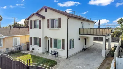 Step into a world of modern sophistication with this newly renovated Norwalk estate, combining style, space, and versatility in one stunning package, offering 2,766 of total living area. The primary residence spans an impressive 2,216 sq ft, meticulously upgraded with new plumbing, electrical, flooring, and a brand-new roof for lasting peace of mind. An inviting, open floor plan awash in natural light leads to three spacious, elegantly appointed bedrooms and bathrooms. The primary suite stands out with nearly 800 sq ft, a luxurious walk-in closet, and a dreamy private balcony perfect for morning coffees or relaxing evenings. Entertain or unwind in the chef’s kitchen, appointed with exquisite Taj Mahal countertops and highlighted by a custom fireplace and detailed Santa Barbara finish with a stylish wood slab façade, making every gathering memorable. Beyond the main home, discover a fully permitted 550 sq ft ADU featuring two bedrooms and a bath—ideal for guest accommodations, extended family, or generating rental income. The expansive backyard offers abundant space for lively entertaining or quiet alfresco relaxation, further enhancing the property’s appeal. This residence seamlessly blends high-end finishes, thoughtful design, and flexible living options to meet the needs of modern buyers seeking luxury and value in one of Norwalk’s most desirable neighborhoods