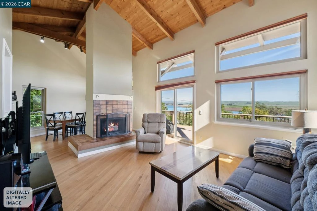 Perched in one of Novato’s most desirable neighborhoods, this exceptional home offers sweeping views of the Petaluma River and the rolling Sonoma hills. Blending nature with modern living, the residence features open beam/soaring ceilings and a striking fireplace that serves as the focal point of the main living area. The thoughtfully designed floor plan offers an ideal open-concept layout with subtle separation between living spaces, creating both connection and comfort. Recessed lighting enhances the bright interior, while the eat-in kitchen and formal dining area provide excellent options for everyday living and entertaining. Generously sized bedrooms offer comfort and versatility, and a unique, separate private suite creates an ideal space for adult children, in-laws, or guests. The backyard provides a peaceful, country-like setting with terraced spaces perfect for relaxing and enjoying the surrounding natural beauty. Wraparound decking captures stunning views from multiple vantage points, creating a seamless indoor-outdoor lifestyle. Energy-efficient solar adds comfort and efficiency year-round. A rare opportunity to enjoy scenic living in a truly special setting.