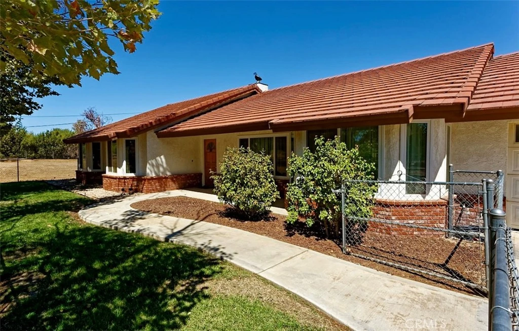 Welcome to your desert oasis situated just minutes from the 15 freeway, restaurants and stores. This spacious and well-maintained 3 bedroom, 2 bathroom home offers 2423 sq. ft. of comfortable living space on a fully fenced in 5 acre lot. Perfect for those who value privacy, space and versatility with mountain and desert views. Inside you will find a spacious open-concept layout ideal for everyday living as well as entertaining with your own beautiful wet bar as well as a built in china cabinet and a built in entertainment center. The kitchen's open floorplan has excessive amounts of counter and cabinet storage space. A working wood burning stove creates a cozy ambiance in the cooler months. New double pane California Deluxe windows that include a warranty were installed in 2024,a new HVAC unit installed in 2025 as well as a new water heater installed in 2023. Septic was last pumped in 2023. There is also a swamp cooler with three vents strategically placed in the master bedroom, hallway and living room, providing an extra layer of cooling efficiency. The master suite features a large walk-in closet and a bathroom with new laminate flooring. The en-suite bath offers a large jet bathtub, a steam shower option and a bathroom wall heater to keep you warm on chilly mornings. The home also includes an enclosed, carpeted patio with a ceiling fan and double pane windows that directly leads into the master bathroom and could be used as an exercise room, or possibly an extra sleeping area or game room. The indoor laundry room includes a wash sink and a built-in ironing board for convenience. Outside, the property is fully fenced, includes a barn structure, a dog run, six different timed sprinkler systems and several pistachio trees. The outside back concrete patio is perfect for entertaining with a fire pit and rose bushes. Additional features of the home include an attached 4 car garage for ample storage as well as a Nest smart thermostat and security system. This home offers endless possibilities of comfort and privacy.
