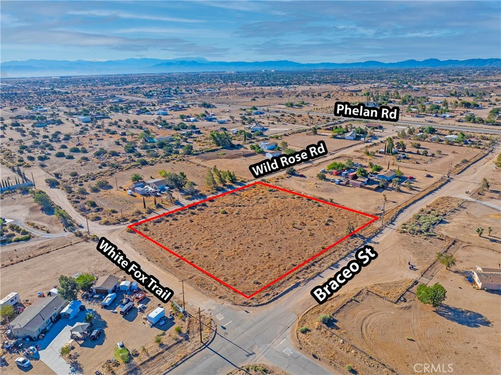 Oak Hills corner lot has WATER METER, Natural Gas and electricity on the street, Corner to paved White Fox Trail, all fenced close Baldy Mesa rd., and Phelan Rd