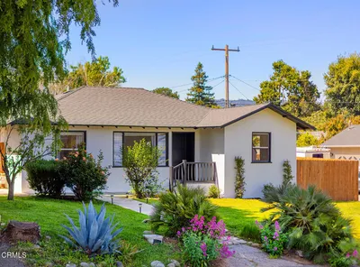 This enchanting 2-bedroom, 1-bath home located in Oak View, Ca. blends timeless charm with modern upgrades. Nestled in midtown Oak View, with quick access to beaches, world class surfing, hiking, biking, Lake Casitas and award winning Sunset Elementary School, this recently renovated home is perfect for first-time buyers, downsizers seeking a smart retreat, or anyone looking for a value purchase. Step inside to the inviting living room featuring a handsome wood-burning stove and wood floors. The upgraded kitchen boasts sleek quartz countertops, stainless-steel appliances, and ample space for culinary magic. Enjoy the convenient mudroom with included washer and dryer, plus updated light fixtures and ceiling fans throughout. Outside, a gardener's paradise awaits in the fully fenced yard, front and back, complete with an array of fruit trees. The large gated driveway offers RV parking, and the spacious detached two-car garage has potential for ADU conversion or extra storage for vehicles and hobbies. With easy access to downtown Ojai and Santa Barbara and short walk to coffee,dining, shops, groceries, BBQ, museums, U.S. Post Office, plus nearby hiking and biking trails, this renovated California Cottage home is a sweet spot to call home at yesterday's prices.