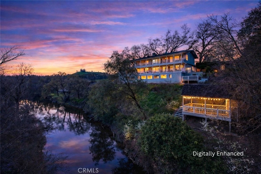 Perched on a scenic ridge overlooking the Stanislaus River, this beautiful home offers a rare blend of comfort, nature, and outdoor living. Set on a 37,462sqft lot, the home is surrounded by mature trees and lush greenery, creating a serene retreat just minutes from town. A paved pathway leads to the home, where charming wood siding and a grey comp roof complement the natural landscape. Inside, the home offers 2,440 sq ft of living space with 3 beds and 4 baths. The main living area welcomes you with a cozy fireplace, ceiling fans, and large dual-pane windows that fill the space with natural light, while framing picturesque outdoor views. The living and dining areas flow together, creating an inviting space for everyday living or entertaining. The kitchen features granite countertops, ample cabinetry, a gas range, and a breakfast nook perfect for casual dining. Downstairs, the spacious family room with a fireplace, built-in shelving, wet bar, and wide windows overlooking the river provides a relaxing gathering space. Bedrooms include dual primary suites and are thoughtfully designed with neutral tones, ceiling fans, and large windows allowing natural light and scenic surroundings to be enjoyed throughout the home. Step outside to experience the property's exceptional outdoor living spaces. A large covered upper deck runs along the home, offering comfortable seating areas and sweeping views of the river and surrounding countryside. From the top deck, you can watch birds glide by at eye level, while the lower deck offers a closer perspective of the river below. A series of wooden walkways and stairs leads down the hillside to a charming gazebo overlooking the water, creating the perfect setting to enjoy a meal, relax, or visit with friends. The property is rich with wildlife and natural beauty, where sightings of beavers, otters, deer, foxes, minks, eagles, fish, and raccoons are not uncommon. The fully fenced yard also features garden areas and fruit trees, including apricot, Meyer lemon, and pomegranate, perfect for those who enjoy gardening. Located just five minutes from town, the home offers the tranquility of country living with everyday conveniences nearby. Residents also enjoy easy access to nearby Orange Blossom Park, where a scenic river walk leads to the main park and back along a peaceful trail. With stunning views, abundant wildlife, and a welcoming community, this unique riverfront property is a truly special place. Welcome Home!!!