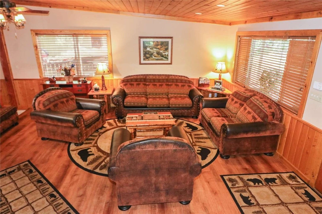 Beautiful Bass Lake Heights Cabin Smart Home. Turn key, fully furnished spotless & pristine move in ready. The home is approx.1 mile or a 3 minute drive to Bass Lake, the Forks Resort & Marina where you can moor your boat. The lake has many beaches and picnics areas. Enjoy 82º water temp. for summer swimming. A short 15 miles from the So. Entrance to world class Yosemite National Park, and an 8 minute drive to town where all the major grocery stores, and great restaurants are. This charming cozy cabin has new hard flooring & carpet. It has been a vacation rental so everything needs to be immaculate. It has Central heat & AC, almost new tankless water, a smart home to control all lights, thermostat & door locks remotely from anywhere. It is situated on a ridge just above the lake at 3400 ft elevation (we get some winter snow). Hike to the Lake on the Mono trail. Bass lake heights is situated against CA forestry land. The neighborhood is quiet, full of warm and friendly folks & Madera County winter snow removal, fire hydrants and its own mutual water company. Updated and well maintained in recent years with new concrete driveway 2 stall carport. Your home features 350º wrap around deck, 3/4 covered. Gas fire pit & BBQ plumbed into the main tank, for easy outdoor entertaining. Great cabin feeling with Knotty Pine ceilings, wainscoting, and wood trim accents. Kitchen features stainless steel sink, granite tile and custom tile back splash, appliances and pantry. The great room features large wood burning brick fireplace with heat fan for warm winter nights. A large living room. Large master suite with private bath, sitting area, a beautiful work desk and deck access. 2nd bedroom off the Great room and hall bath & deck access. 3rd bedroom downstairs & 1/2 bath with stacking washer dryer & high end elec. fireplace adds warm charm. A large storage area underneath cabin off the downstairs bedroom with a big work bench. Out the back door is a beautiful hot tub & bonus laundry room. Almost all contents included. Equipped for a whole house generator with manual transfer switch. A peaceful mountain community with beautiful cedar & pine trees is a backdrop that will elevate this retreat into something truly special. Whether you're seeking a personal getaway or a move-in-ready second home or successful vacation rental, this tranquil haven invites you to slow down, breathe deep, and live where nature leads. Don't miss out on this wonderful cabin. A must See!