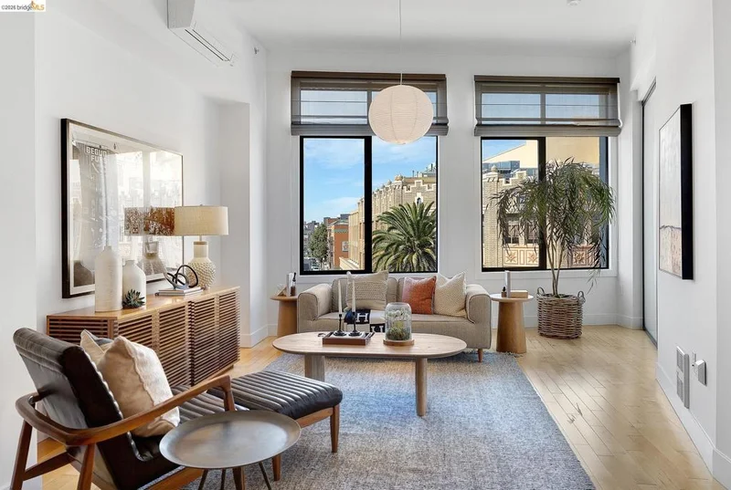 In the 1920s, as the neon of the Fox Theater and Paramount Theatre lit up Uptown’s skyline, 1755 Broadway stood at the center of Oakland’s most electric nights. Today, that same address offers a refined, design-forward 2 bedroom, 2 bathroom residence in the very heart of the city. Unit 45 blends historic character with modern sophistication, featuring soaring ceilings, dramatic commercial height windows, motorized shades, and a sleek gourmet kitchen with stainless steel appliances and granite countertops. The newly-renovated primary suite showcases a spa-inspired glass enclosed shower, while the spacious second bath includes a deep soaking tub. Newly installed AC and heat split systems provide year-round comfort. Secure garage parking, elevator access, and professional management enhance everyday ease. With 19th Street BART just three minutes away, San Francisco, Berkeley, and beyond are within effortless reach. For the buyer who wants style, energy, and seamless access to dining, nightlife, culture, and transit, 1755 Broadway places you directly in the pulse of Uptown Oakland. HOA includes Google Fiber internet, water, garbage, designated under-ground parking space, common area maintenance. Building has been retrofitted.