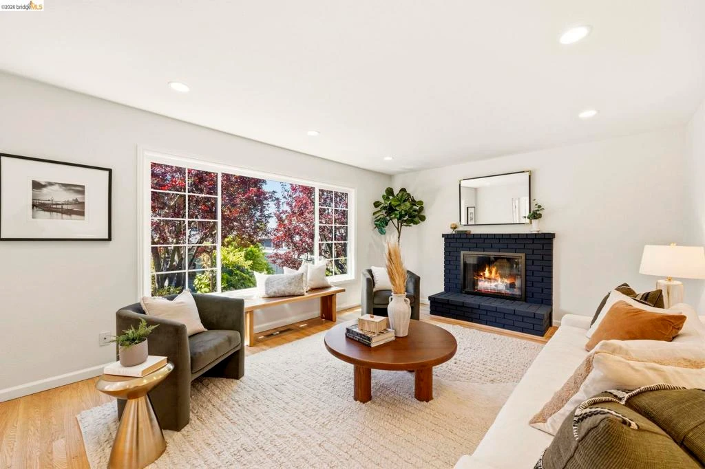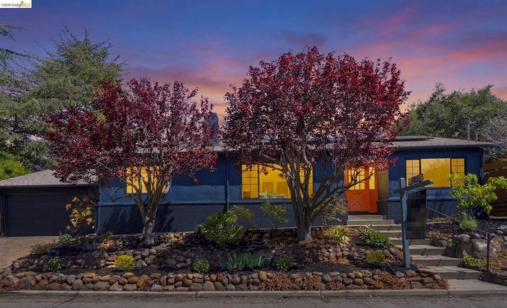 Tucked along one of the neighborhood's coveted streets, this single-level ranch offers serene, Shangri-La seclusion while remaining just steps from one of Oakland's most celebrated urban corridors. Michelin-starred dining, a curated wine bar, Fenton's Creamery, Piedmont Grocery, & the iconic Piedmont Theatre are all mere moments away: a Walker's Paradise with a 94 WalkScore (WalkScore.com) to prove it. The home's single-level floor plan is both generous & gracious, w/light-filled living & dining rooms that flow effortlessly and reward easy, elegant living. A wood-burning fireplace anchors the living room, while custom lighting throughout lends a refined, curated atmosphere. The recently renovated kitchen feat. quartz countertops, a center island, earth-tone cabinetry, stainless appliances, & striking blue glaze horizontal tile backsplash. Direct access from the kitchen leads to a private rear patio & lush yard, ideal for alfresco entertaining or quiet evening retreats. Three well-proportioned bedrooms incl. a primary suite w/a stylishly appointed en suite bath. The hall bathroom is equally impressive, feat. a vertical tile shower surround & bespoke finishes. Seller-owned solar panels, hallway laundry room, an EV charger, 2-car attached garage w/direct interior access & storage.