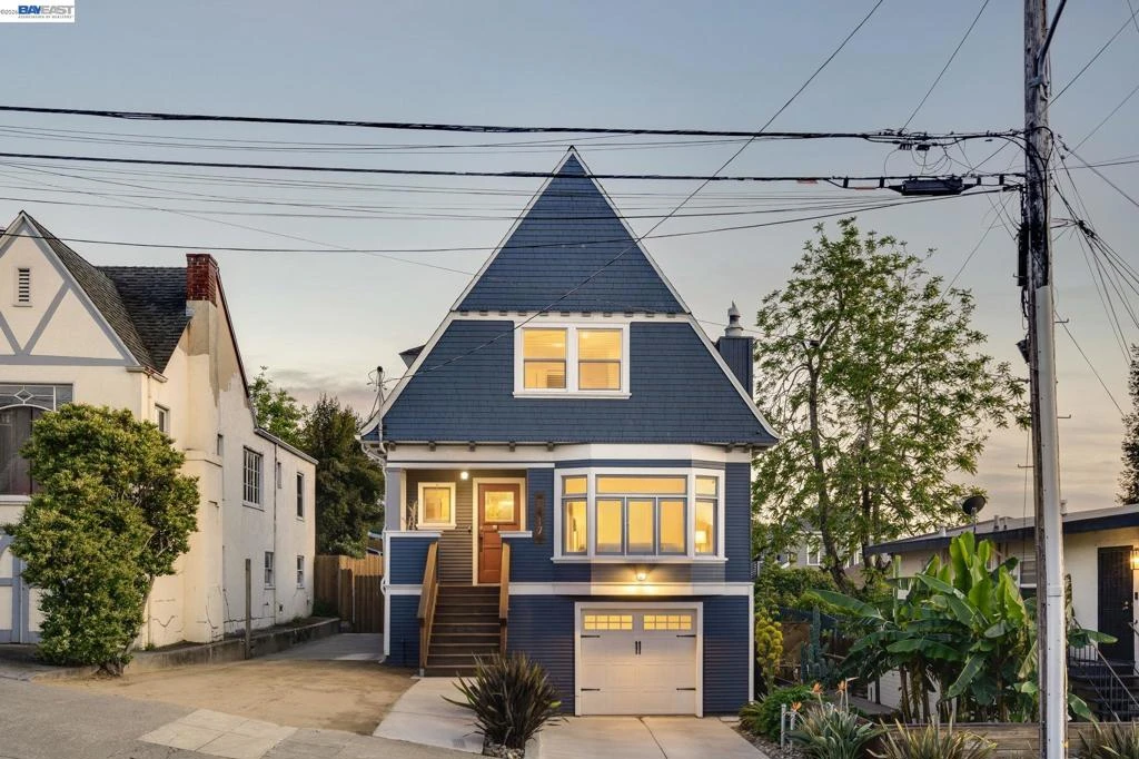 Classic 1912 Shingle Cottage, gutted and fully rebuilt in 2019/2020 with no detail overlooked. Spanning 3 levels and 2,167 SF on a 6,850 SF lot, the home features 3 beds, 3.5 baths, and a stunning open-concept main level with refinished hardwood floors, a dramatic floor-to-ceiling tiled fireplace, and a chef's kitchen with waterfall quartz island, Shaker cabinetry, subway tile backsplash, and double wall ovens. Upstairs, the vaulted cedar-ceiling primary suite offers a walk-in closet and luxurious en-suite bath with dual vanity and glass shower. Lower level includes a bedroom, full bath, kitchenette, and 2-car tandem garage — ideal for multi-gen living. Private backyard retreat with patio, decking, and lawn. Studio ADU (187 SF) with kitchenette, bath, and private entrance. Owned 7.7kW solar. Steps to Bombera, Farmer Joe's, Grand Lake Kitchen, Dimond Park, and Hwy 580