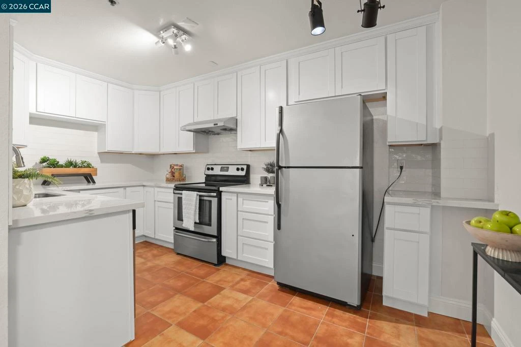 Welcome to 322 Hanover Avenue #107, a beautifully situated two-bedroom, two-bath condo just moments from the paths, water, and energy of Lake Merritt. This inviting home features inlaid hardwood floors in both bedrooms, and brand new flooring throughout the main space in the home. An open living and dining area anchored by a cozy fireplace, new top of the line in-unit laundry, and a generous private patio ideal for indoor-outdoor living. The brand new kitchen offers classic subway tile backsplash, and stainless steel appliances. The spacious primary suite includes two closets and a full en-suite bath, while both bedrooms open directly to the patio, creating a seamless connection to the outdoors. The well-maintained building provides a peaceful central courtyard, secure deeded off-street parking, and convenient bicycle storage—perfect for enjoying everything the Lake Merritt neighborhood has to offer. Open House 2/28-3/1