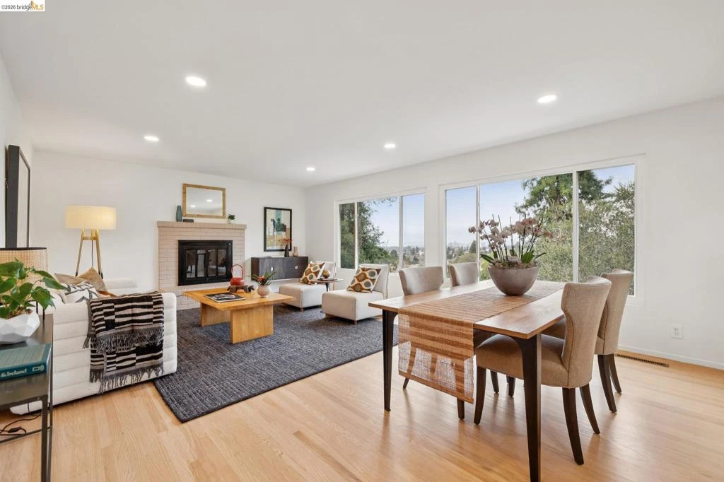 Perched in Oakland’s hidden gem Upper Dimond neighborhood, this 1956-built 3-story home has been refreshed w/ a designer’s eye, thoughtfully expanded over the years & takes full advantage of its expansive downslope setting, capturing dramatic views of SF and the Bay from every level. A flexible floorplan brings forward 5 bedrooms & 3 baths, along w/ a dedicated office alcove framed by Bay views & a lower-level family room w/ wet bar, also featuring Bay views. Open to the living & dining area, the updated kitchen features newly painted cabinetry, quartz countertops, Thermador appliances, an expansive island, designer lighting & large windows framing City & Bay views. The expansive primary suite offers a 2nd fireplace, sitting area, spa bath w/ jetted tub, oversized walk-in shower, travertine tile, dual sink vanity, & walk-in closet. The lower level includes a separate family room w/ wet bar, office alcove, bedroom & yard access. Tiered grounds feature a patio, basketball court & additional open space to grow into. Upgrades include a newer roof, 3 new high-efficiency furnaces, dual-pane windows, recessed LED lighting, fresh paint inside/out, new plumbing fixtures, lighting & hardware. Attached 2-car garage & laundry room w/ side by side W/D, plus plenty of storage. Not to miss. Views: Downtown