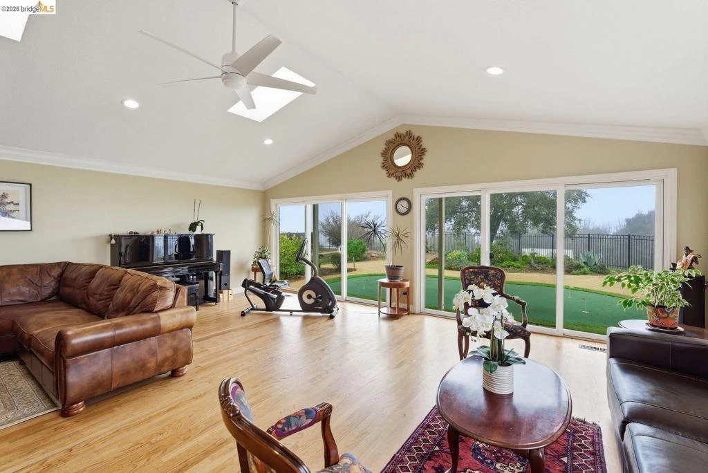 Welcome to your dream home in the highly sought-after Parkridge Estates-where comfort, luxury, and nature come together in perfect harmony. This beautifully appointed 4-bedroom, 2.5-bath residence is ideally situated on an expansive 25,000+ sq.ft. level lot surrounded by a natural oasis, offering both privacy and spectacular views of Chabot Regional Park. Just moments from scenic East Bay trails, you will enjoy the serene setting and thoughtfully designed outdoor spaces, including a private yard, hot tub and putting green. Inside, the open-concept kitchen/dining area seamlessly flow into the inviting living space. The kitchen is a true centerpiece with the luxury of heated floor and incredible vistas. The primary suite offers a peaceful sanctuary, complete with a walk-in closet, heated bathroom floor and access to a private deck with hot tub. Spacious bedrooms provide flexibility. Expansive windows frame the surrounding natural beauty and fill the home with light. Additional features include recessed lighting, elegant crown molding, owned solar panels, and hardwood floors. The property also provides ample space for RV/Boat parking. This exceptional home delivers incredible lifestyle. Don't miss this rare opportunity to own a slice of paradise in Parkridge Estates