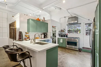 Unforgettable Industrial-Chic Live-Work Loft with Storefront in Historic Oakland Warehouse. Rare, true live-work opportunity offering authentic warehouse character and exceptional flexibility. Corner of 28th & Myrtle, entrance on Myrtle-Currently operating as a high-end salon with a stylish residence, this one-level space features cool storefront with roll-up door, dramatic ceiling heights, concrete floors, and bold architectural details throughout. The adaptable floor plan allows for a 3BR/2BAreesidence, a 2BR home plus shop or studio, or a separate 1BR/1BA work or guest space—ideal for retail, art or design studio, photo/video production, café concept, or creative business. Behind the storefront, enjoy a remodeled kitchen, expansive open living area, curated designer finishes, and seamless indoor-outdoor flow to a private garden patio. Additional highlights include level-in entry, updated baths, two deeded parking spaces adjacent to the unit, and separate storage. A truly unique, non-cookie-cutter property in one of Oakland’s most dynamic creative neighborhoods. (Some images photoshopped to show potential usages)