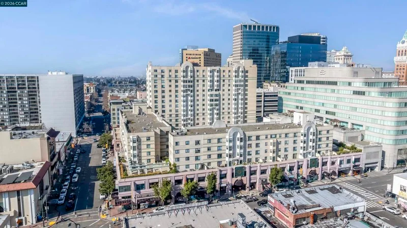 This beautifully updated 1-bedroom, 1-bath condo offers 615 square feet of bright, functional space in a well-maintained 1993 high-rise. This unit is well maintained and move-in ready at an exceptional price! Large windows fill the unit with natural light and offer views of the city. The open living, dining, and kitchen layout creates a seamless flow, while the generously sized bedroom provides ample space and storage. Enjoy the convenience of one secure, assigned garage parking space. Building amenities include elevators, laundry facilities, a rooftop garden, courtyard, and ground-floor conveniences such as a bank, restaurants, library, and health center. Just steps to BART, shopping, dining, and more... this is a rare opportunity to own an affordable, light-filled condo in one of Oakland’s most vibrant neighborhoods.