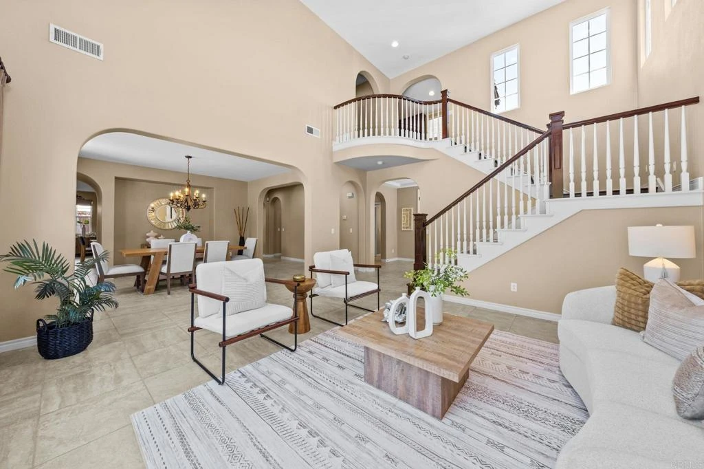 Located in the highly sought-after Arrowood master-planned community in Oceanside, this expansive 5-bedroom, 4.5-bath home offers approximately 4,159 SQFT of thoughtfully designed living space, featuring a flexible floor plan ideal for multigenerational living, remote work, and modern Southern California lifestyles. The home welcomes you with spacious living areas, soaring ceilings, and a well-appointed kitchen featuring granite countertops, double ovens, gas range, and abundant cabinetry, opening seamlessly to the main living areas for everyday living and entertaining. The bedroom layout is both functional and versatile. On the main level, you’ll find a private bedroom located next to a full bathroom, creating a convenient setup for guests or extended family. This area can also be easily closed off to create a private guest or in-law suite. Upstairs, the spacious primary suite offers a comfortable retreat with generous proportions and room to unwind. The second level also features three additional bedrooms, including two connected by a Jack-and-Jill bathroom, while the third bedroom has access to another full bath. Adding even more flexibility is the ginormous bonus room, currently set up as a home movie theater, but easily adaptable as a game room, media room, home gym, playroom, or additional living space. Step outside to your own private backyard oasis designed for true California indoor-outdoor living. The resort-style yard features an owned solar-heated pool and spa with a water slide, creating the perfect space for entertaining, relaxing, and hosting unforgettable gatherings. Situated just minutes from the Arrowood Golf Course, widely recognized as one of the top public golf courses in North County San Diego, the community also offers desirable amenities including parks, a community pool, pickleball courts, and scenic walking paths. Conveniently located near beaches, shopping, dining, schools, and freeway access, this home offers the perfect blend of space, lifestyle, and location in coastal Oceanside.