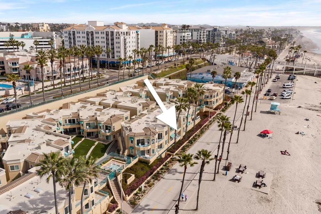 Experience breathtaking front-row coastal living at 400 N The Strand #27—a beachfront gem in the coveted San Miguel III community. This rare ground-level unit offers no-stairs access, making beachside living both luxurious and effortless. Enjoy panoramic white water ocean views and the soothing sound of waves from the comfort of home! Inside, the condo features fresh paint and tastefully updated bathrooms, creating a clean and modern coastal vibe. The open-concept living space is filled with natural light and opens directly onto an ocean-view patio—perfect for dining al fresco or soaking in the sunsets over the Pacific. As evening falls, take in the magical sight of the Oceanside Pier glowing against the night sky—an unforgettable view right from your living room or patio. The spacious primary bedroom features a walk-in closet and dual sink vanity. Additional highlights include in-unit laundry, a cozy fireplace, and two assigned underground parking spaces in a gated garage with elevator access. Ideally located just a short stroll from the Oceanside Pier, marina, and vibrant downtown, this home puts you steps away from Oceanside’s best dining, coffee shops, and boutique shopping. San Miguel III is a well-maintained beachfront community featuring two spas, beautifully landscaped grounds, and multiple access points to the sand. Whether you're looking for a peaceful beachfront escape or an unbeatable location to enjoy all that Oceanside has to offer, this is your chance to own a front-row seat to Southern California’s iconic coastline.