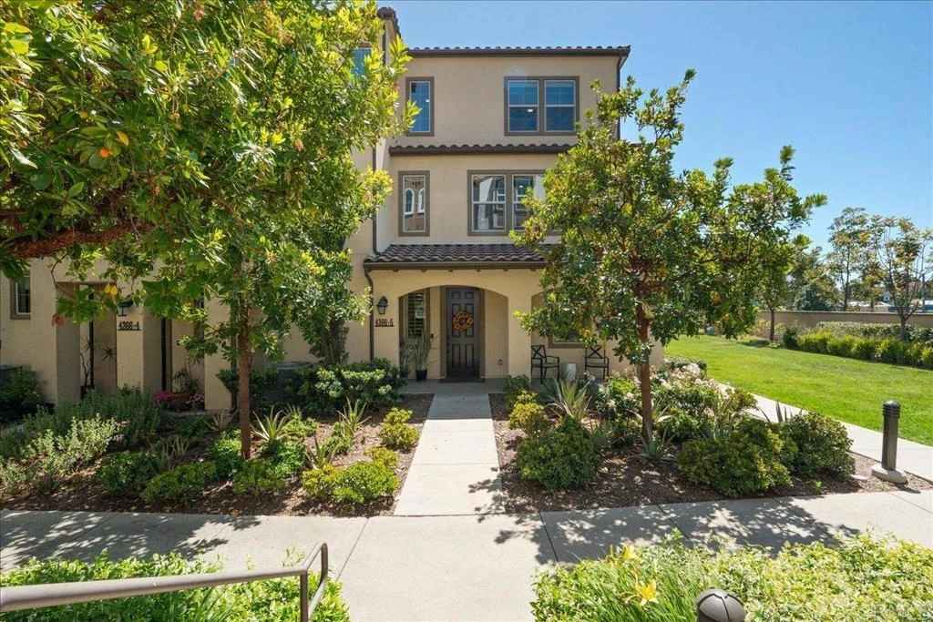 Welcome to 4366 Pacifica Way, Unit 5, a beautifully upgraded end-unit townhome nestled in the prestigious gated community of St. Cloud in Oceanside. This spacious 4-bedroom, 3.5-bathroom home offers 2,213 square feet of modern living across three thoughtfully designed levels. The flexible floor plan includes a full bedroom and en-suite bathroom on the first floor—perfect for guests or a home office—while the second level features an expansive open-concept living area, gourmet kitchen, and luxurious primary suite. Upstairs, two additional bedrooms and a full bathroom complete the home’s generous layout. Dual-pane windows and warm luxury vinyl plank (LVP) flooring set the stage for a contemporary yet inviting ambiance. The spacious kitchen offers ample cabinet storage, quartz countertops, modern stainless steel appliances and a large island that seamlessly connects the dining and living areas—ideal for entertaining or unwinding at the end of the day. Set on a quiet corner lot with greenbelt views, this townhome offers both privacy and peaceful surroundings. The St. Cloud community provides a resort-style lifestyle with amenities such as an Olympic-sized pool, spa, clubhouse, fitness center, BBQ areas, picnic spots, and playgrounds. The attached two-car garage offers direct access, extra storage, a quiet garage door, and a door leading out directly to the adjacent green belt. This home is situated near Martin Luther King Middle School, the highly rated Ivey Ranch Elementary, and is just minutes from El Camino High School and the exciting new developments at El Corazón, home to the Frontwave Arena and the SD Clippers. Whether you're searching for a primary residence or a vacation retreat, this home is a rare opportunity to experience the best of coastal living. Claim your place in one of Oceanside’s most desirable communities!
