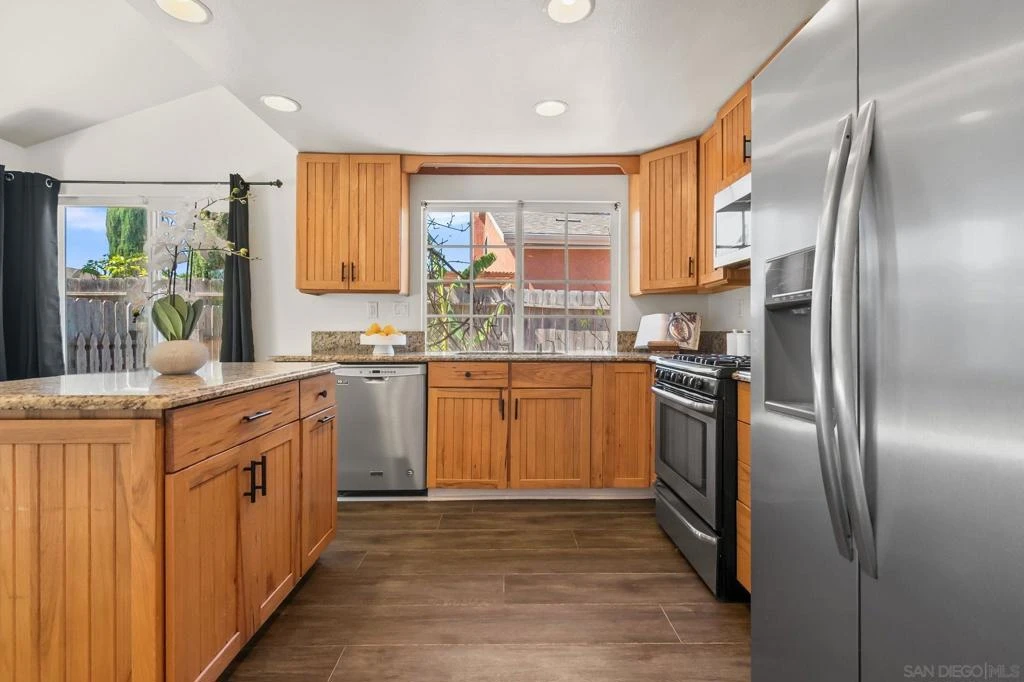 Welcome to Oceanside's Garden Escape! This beautiful home features outdoor living at its finest. With two gated yards to enjoy, a front deck to relax on and a plethora of fruit trees to savor, & no HOA, this home is begging you to move in! Fresh interior paint, new garage door and new carpet make this home truly turnkey. This, once 4 bedroom house, was converted into a 3 bedroom, offering a spacious primary bedroom with plenty of room to relax and unwind. Enjoy passion fruit, mulberries, guavas, grapes, bananas, limes, avocados, and clementines all from the comfort of your own yard. Additional trees to include olive, eucalyptus, sycamore, birds of paradise and palm trees; this home is a true lush retreat. Bask in the Oceanside sun while escaping indoors to solar covered electricity. All this home is missing is YOU!