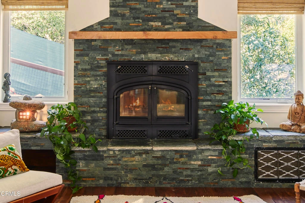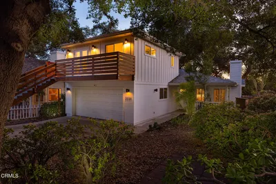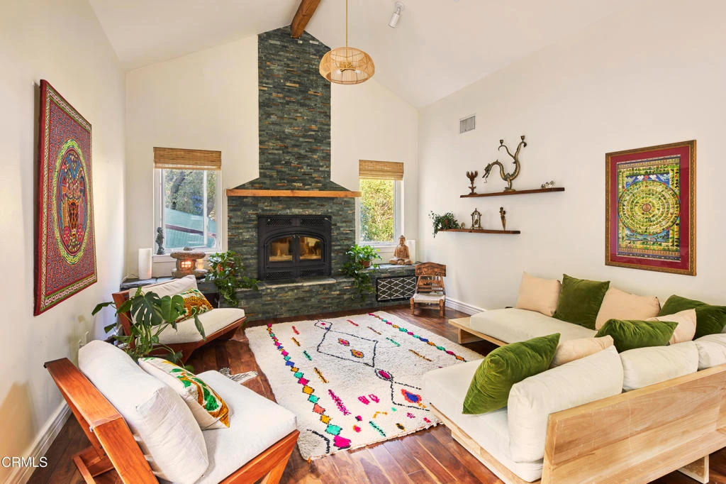 Nestled in nature, surrounded by majestic oaks and the gentle sounds of flowing creeks, this extraordinary Ojai estate -- with 2 private guest units and an in-home spa -- offers more than a home. It offers a way of life. Just 10 minutes from downtown yet a world away, it combines peaceful seclusion with convenient access to the town's vibrant community. Hiking trails, hot springs, and endless outdoor adventures are minutes from your doorstep, with the river just a short walk away, making nature your constant companion.The main residence spans 3,207 square feet of beautifully crafted living space. Double-height vaulted ceilings, exposed wood beams, and a dramatic stone fireplace anchor the great room, while expansive windows bathe the home in natural light. With four bedrooms, three bathrooms, and a thoughtfully designed office infused with creative energy, the home provides ample space for both relaxation and inspiration. The primary suite is a true retreat, featuring a private treetop balcony, generous walk-in closet, and personal cedar sauna. Designed for chefs and entertainers alike, the gourmet kitchen boasts a 48' Wolf range, a large central island, and seamless flow into the home's gathering spaces.Beyond the main residence, the property includes 2 large, private attached guest houses, featuring a charming 1-bed, 1-bath home with private patio and a spacious studio apartment in the treetops. Both boast high ceilings and enormous windows to complement the surroundings and take in nature. Each space contains a full kitchen as well as a full bath. This flexible layout is ideal for rental income, multi-generational living, or hosting guests with ease. Altogether, the estate offers an impressive 4,722 square feet of living space set on more than two acres of hillside beauty.A rare and whimsical offering, this one-of-a-kind property with sweeping views and star-filled nights sits nearby all the wonderful cultural experiences Ojai has to offer. A place to restore and renew, without sacrificing comfort or convenience.