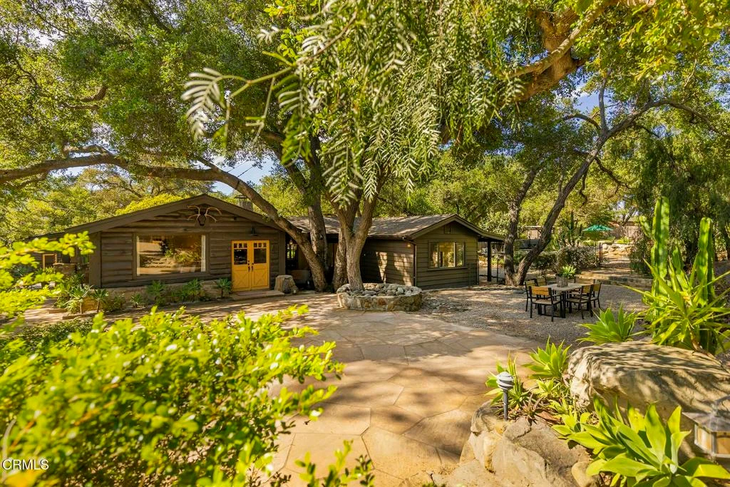 Discover a one-of-a-kind property in Ojai's highly desirable East End. A rare offering full of character, comfort, and creative flexibility. Whether you're seeking a private retreat, a multi-generational compound, or a versatile live-work space, this special property is brimming with possibilities.More than just a retreat, this is a true piece of Ojai history. One of the first homes ever built on Garst Lane, it was home to the Garst family, for whom the private lane is named. Originally known as the Topa Topa Lodge, the log-style structures were built to resemble the Bright Angel Lodge of the Grand Canyon and served as a tranquil escape beneath the iconic Topa Topa Mountains. That same spirit of serenity and creativity lives on today, woven into the property's thoughtful layout and timeless energy.The property features a two-bedroom, two-bath historic split-log main house with vaulted ceilings, a wood-burning fireplace, beautiful wood flooring, curated artistic details, and a spacious galley kitchen with generous cabinetry. A welcoming den and a charming basement wine cellar enhance the home's warmth and character.Two detached guest cottages offer privacy and flexibility. The front cottage is a two-bedroom, one-bath unit with a private patio. The rear cottage is a studio-style retreat with a bathroom, kitchenette, and fenced outdoor area. A separate laundry room and outdoor shower offer extra functionality for guests or extended stays.For those working from home or in creative fields, the detached office features two dedicated workspaces and a professionally designed 4' x 10' sound isolation booth, perfect for podcasters, musicians, or digital creators. The adjacent 2 car garage adds useful storage or workshop potential.Outdoors, enjoy shaded mature landscaping and a fully fenced backyard designed for relaxation or entertaining. Complete with a custom stone pool and waterfall, hot tub, fire pit, and a spacious courtyard parking area accommodating up to ten cars.This property has hosted intimate weddings, retreats, family gatherings, and creative workshops. A truly versatile space with a rich history in one of Ojai's most coveted neighborhoods.