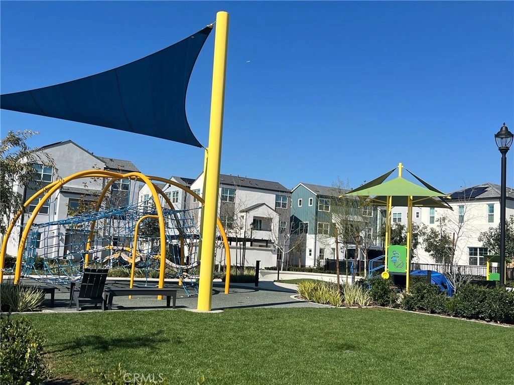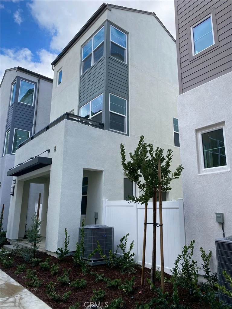 This modern detached three-story condo, Hyde Plan 1 at NUVO Parkside GATED community in the center of Ontario Ranch. SOLAR PAID OFF. This beautiful house features two bedrooms, both with their own bathroom, direct garage access, the main living area, comprising an open kitchen, white shaker style cabinets, quartz kitchen counter-top, pendant lighting over kitchen island, dining space, and living area that seamlessly opens to the second-floor deck, flooding the space with natural light and fresh air. Expect nothing less than GE stainless steel kitchen appliances and a GE stackable washer and dryer. There are two parking spaces, one in the garage and one outdoor car parking space next to the garage. The amenities include swimming pools, spa, clubhouse, BBQ grills, fire pit, indoor space for events, community fitness room, dog park, and a playground. This house is located close to grocery stores and supermarkets like Sprouts, 99 Ranch Market, Stater Bros., and Costco, etc. Fifteen to twenty minutes' drive to Ontario International Airport and Ontario Mills Mall. Close to 60 and 15 freeways.