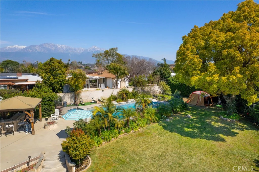 Situated on an expansive 16,174 sqft lot in a serene Ontario neighborhood, this exceptional property offers a rare combination of luxury and versatility. The main residence features 3 bedrooms and 2 bathrooms, highlighted by a sumptuous primary suite with a private retreat. At the heart of the home, an open-concept kitchen with a center island flows seamlessly into the dining and living areas, where a cozy fireplace and integrated surround sound create the perfect ambiance. Complementing the main home is a fully permitted, separate-access ADU, featuring 1 bedroom, 1 bathroom, quartz countertops, and private laundry—ideal for rental income or multi-generational living. The backyard is a private oasis, boasting a fenced pool and spa with a cascading waterfall, a newly built covered patio, and a professional-grade built-in BBQ bar. Beyond the resort-style amenities lies a lush garden with over a dozen mature fruit trees. With a massive driveway for 6+ vehicles and recently updated HVAC and pool systems, this turnkey estate is a rare find.