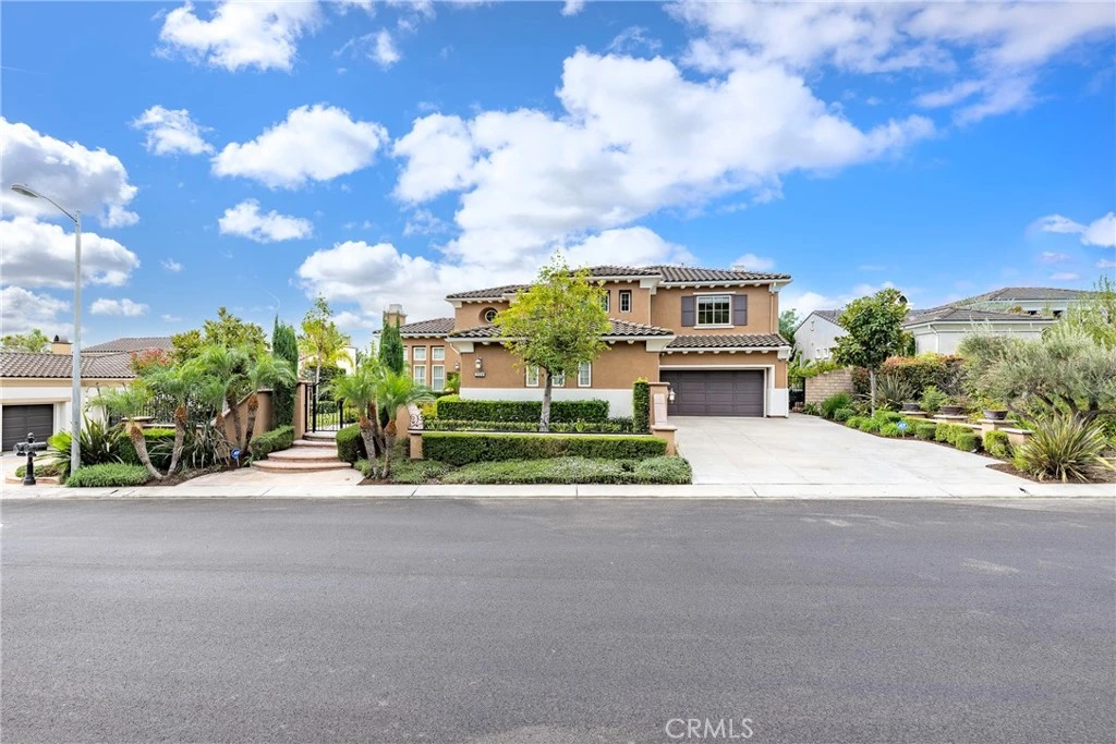 Unobstructed City Lights, Catalina & Ocean VIEWS abound from this exceptional home located in prestigious gate guarded Portofira Estates. The property is Perched on a hill located on a single loaded Street. Enjoy Ocean breezes & spectacular sunsets from your backyard that is suitable for intimate or large-scale entertaining. Many verities of fruit trees enhance the yard. Enter the property through a private gated Courtyard that leads to the dramatic entry with art niches and marble flooring. Step down to the Living Room with Fireplace & Dining room Adjacent the. large butler's pantry with SS wine/beverage refrigerator. and walk in pantry. The gourmet remodeled kitchen with SS oven, dishwasher, microwave, 6 burner cooktop, refrigerator, center island & Quartz countertops, is open to the expanded family room with fireplace. There is a downstairs bedroom suite with walk in closet, & full bath. Office, and large Laundry Room with sink and extensive storage. The magnificent gallery hallway leads up the stairway to the luxurious master suite with fireplace, walk in closets, tub, & glass enclosed e shower. Dual separated vanity areas. Large Balcony off the master suite offers exceptional VIEWS and Sunsets. There are 2 additional bedrooms upstairs, with a shared bath, and one bedroom with a full bath. Oversize 4 car garage with built ins and epoxy coated floors. The home has been recently painted inside. Meticulously maintained and cared for by the original owners. Close to freeway access. One of the premier VIEW oriented Gate Guarded Communities in North Orange County.