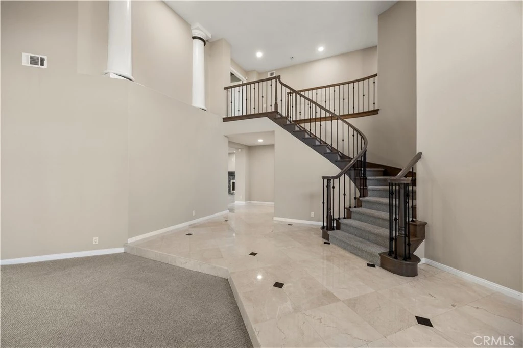 Don't miss this Elegant, Modern residence in Orange Hills' coveted Belmont Estates. As you enter the home, you're greeted by vaulted high ceilings, a gorgeous staircase and marble floor entry. Offering an open Floor plan with recessed lighting, plantation shutters, 3 fireplaces, you will appreciate a full bath and bedroom downstairs, a huge family room that opens to a refreshing pool and spa, backyard with built-in barbecue and umbrella! Perfect for entertaining, the kitchen has a large island with lots of counter space and a sunny breakfast nook. Featuring Three bedrooms upstairs, the primary suite offers double walk-in closets, dual vanities and dual fireplace, plus an office retreat with a view! Approximately 3500 sq. ft. of living, with abundant natural light, newer paint, newer carpet. The attached 3-car garage includes an electric charger and full wall covered shelves throughout, even a wall mirror for private workouts? Very quiet and desirable location in a cul-de-sac, you're up in the hills but enjoy easy access to freeways, shopping, entertainment, hospital and prestigious schools (Canyon High and Villa Park).